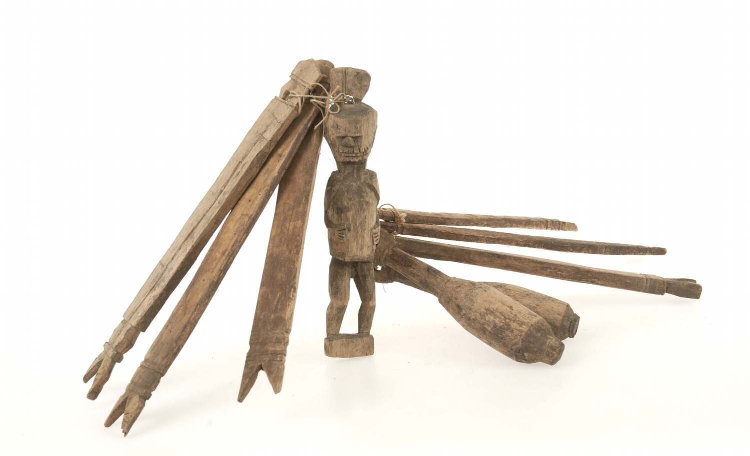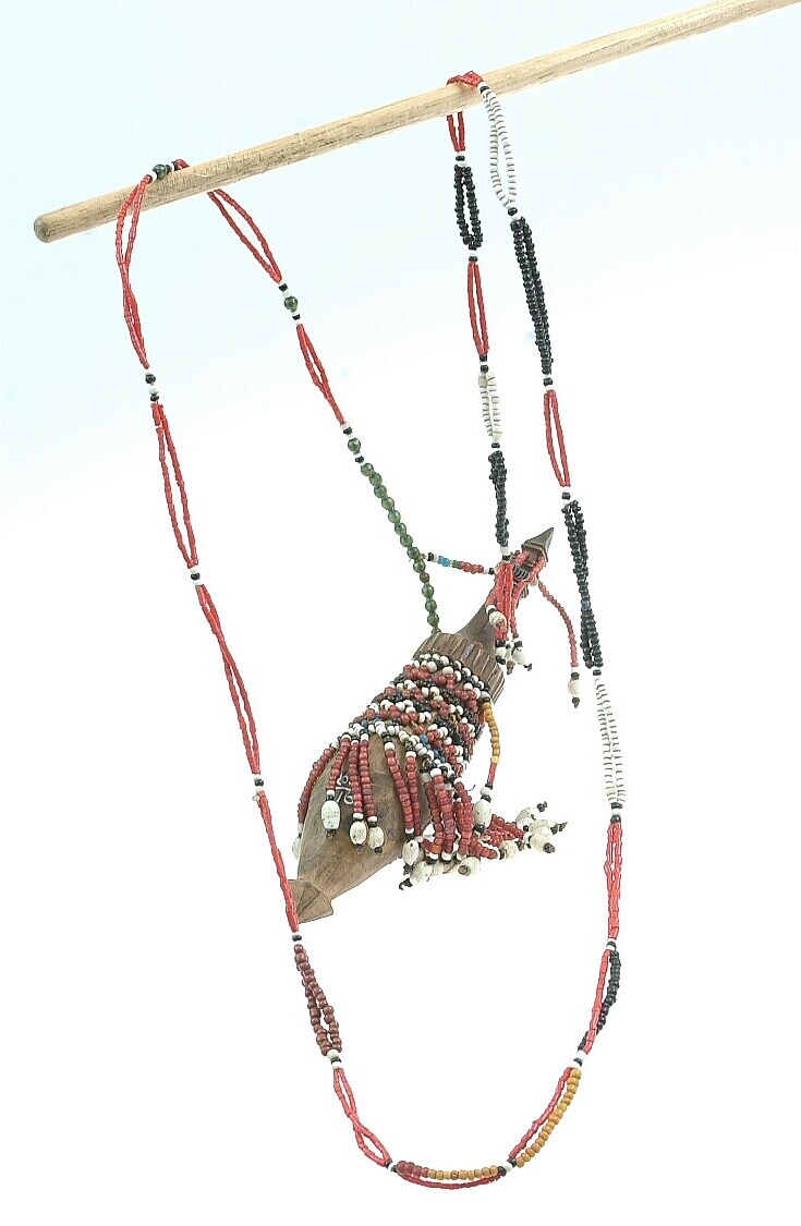 Amulet, n.l. aan een touw geregen houten voorwerpen