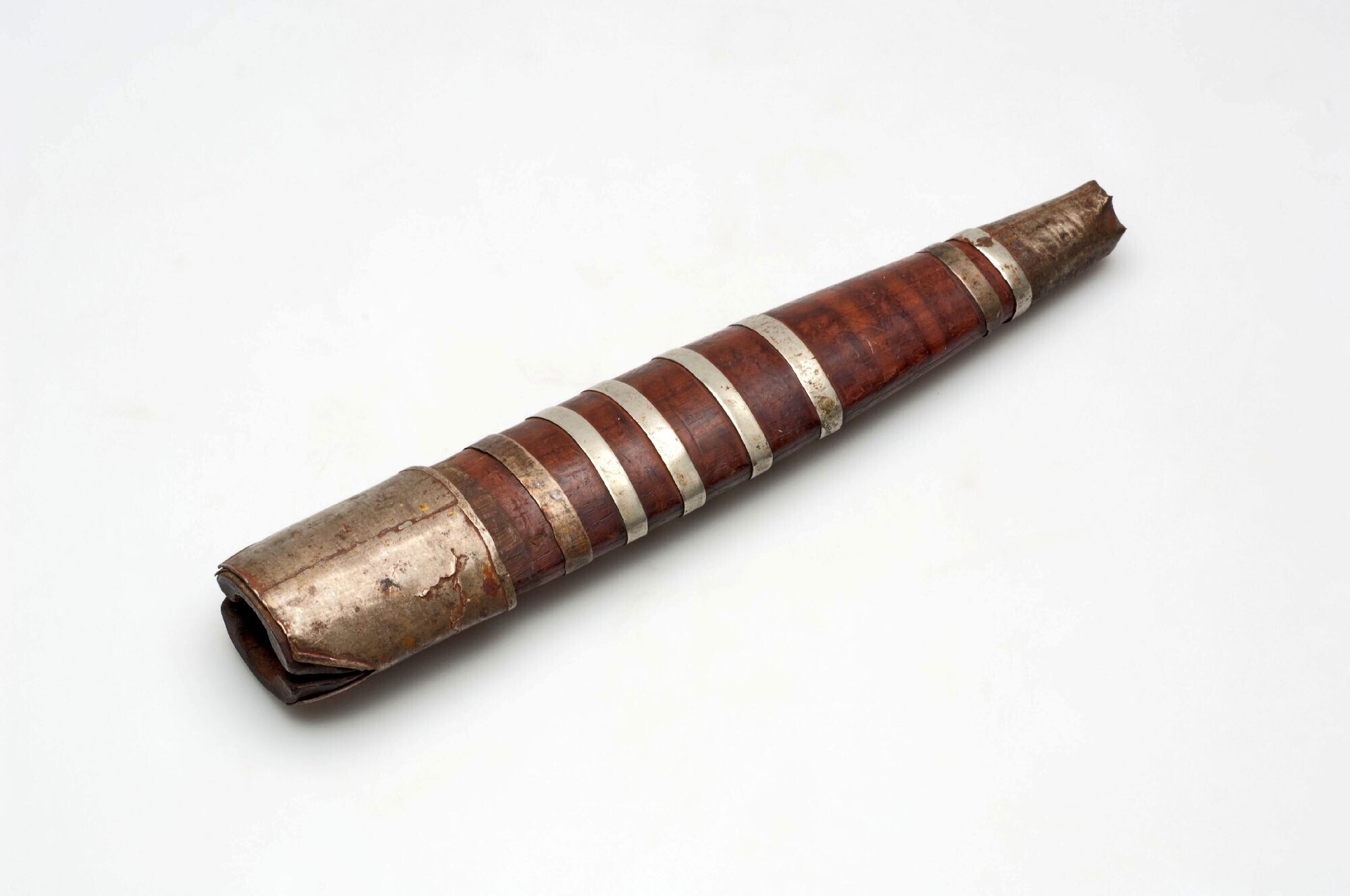 Houten koker met kralenversiering