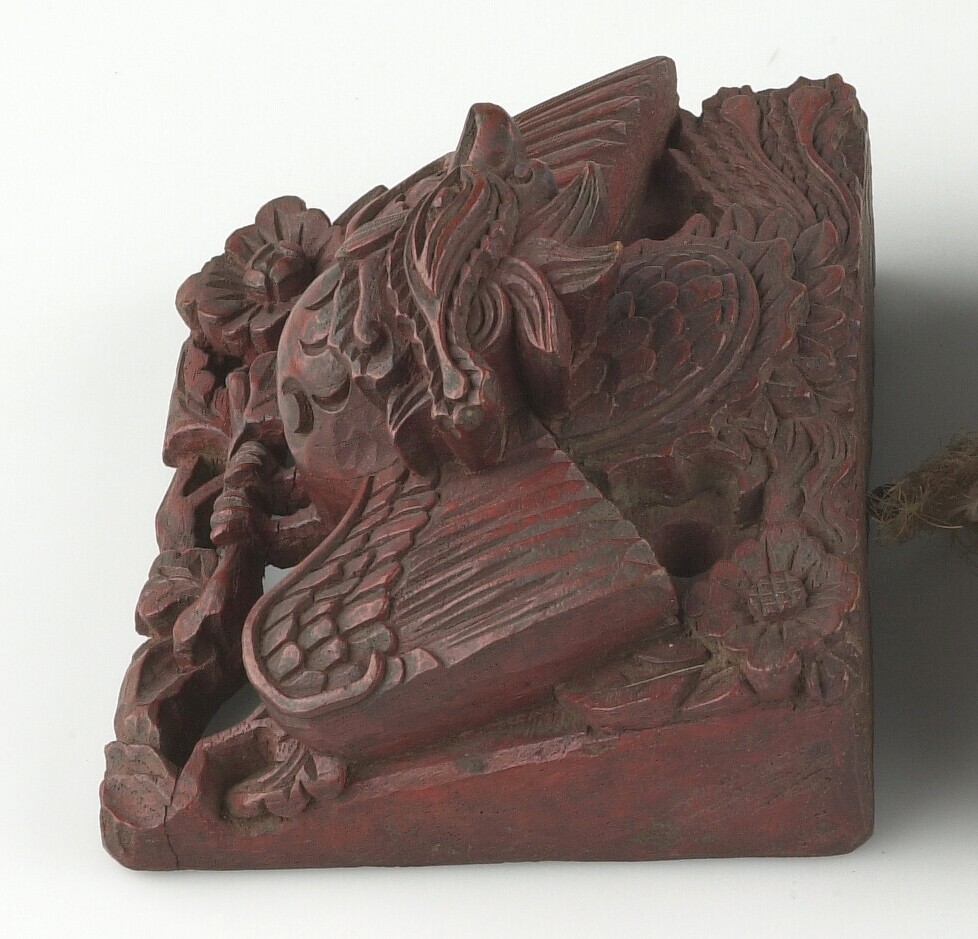 Houten ornament, dierfiguur met uitgespreide vleugels