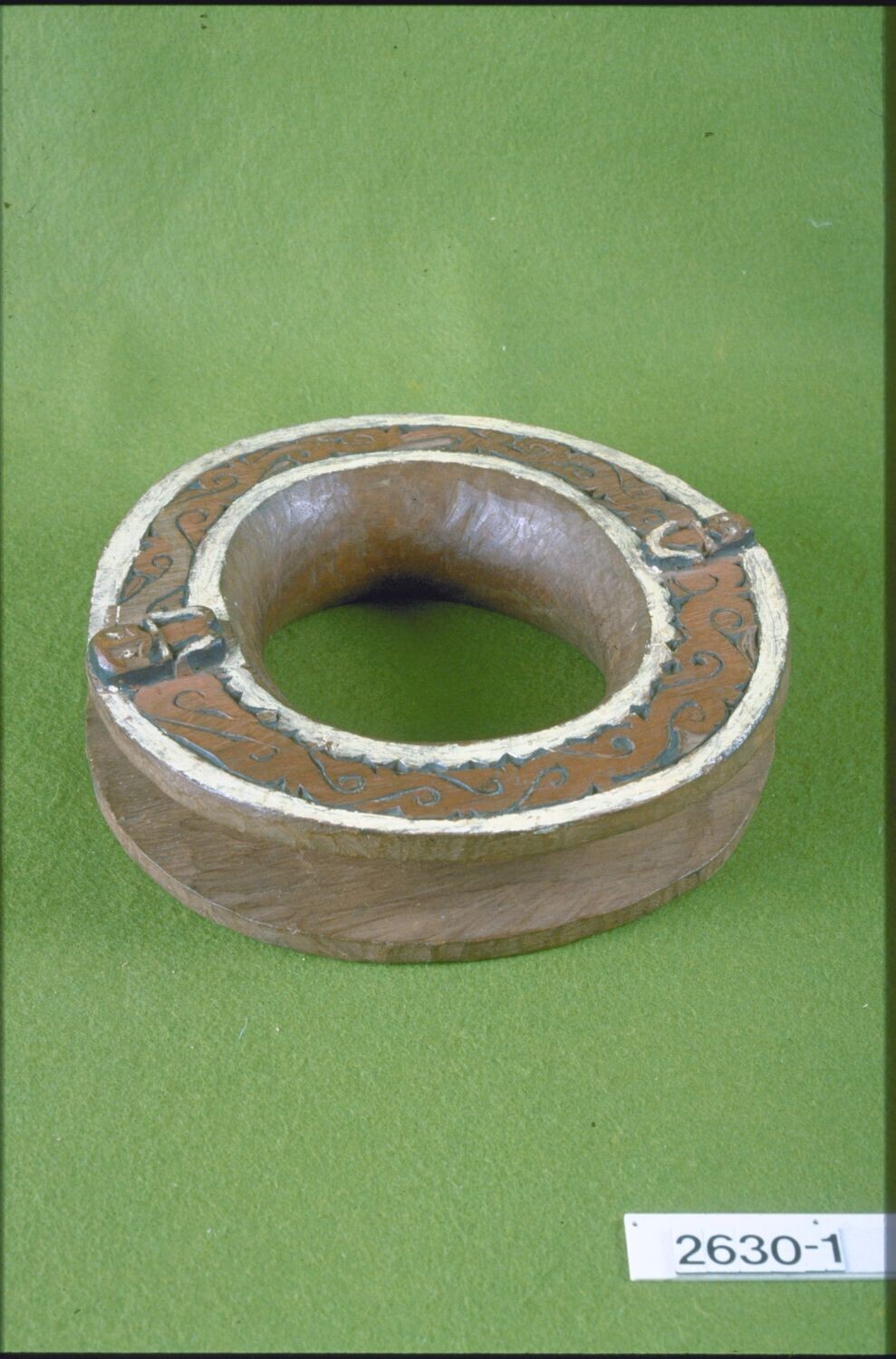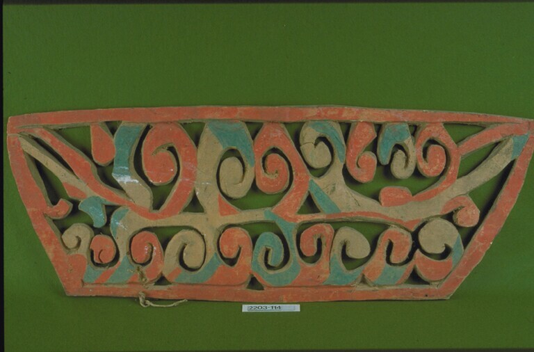 Houten beschilderde klamboehaak in nagavorm