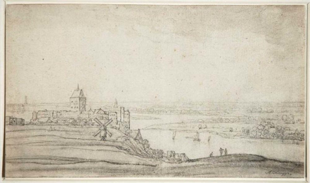 Gezicht op de burcht op het Valkhof en de Belvedere ...