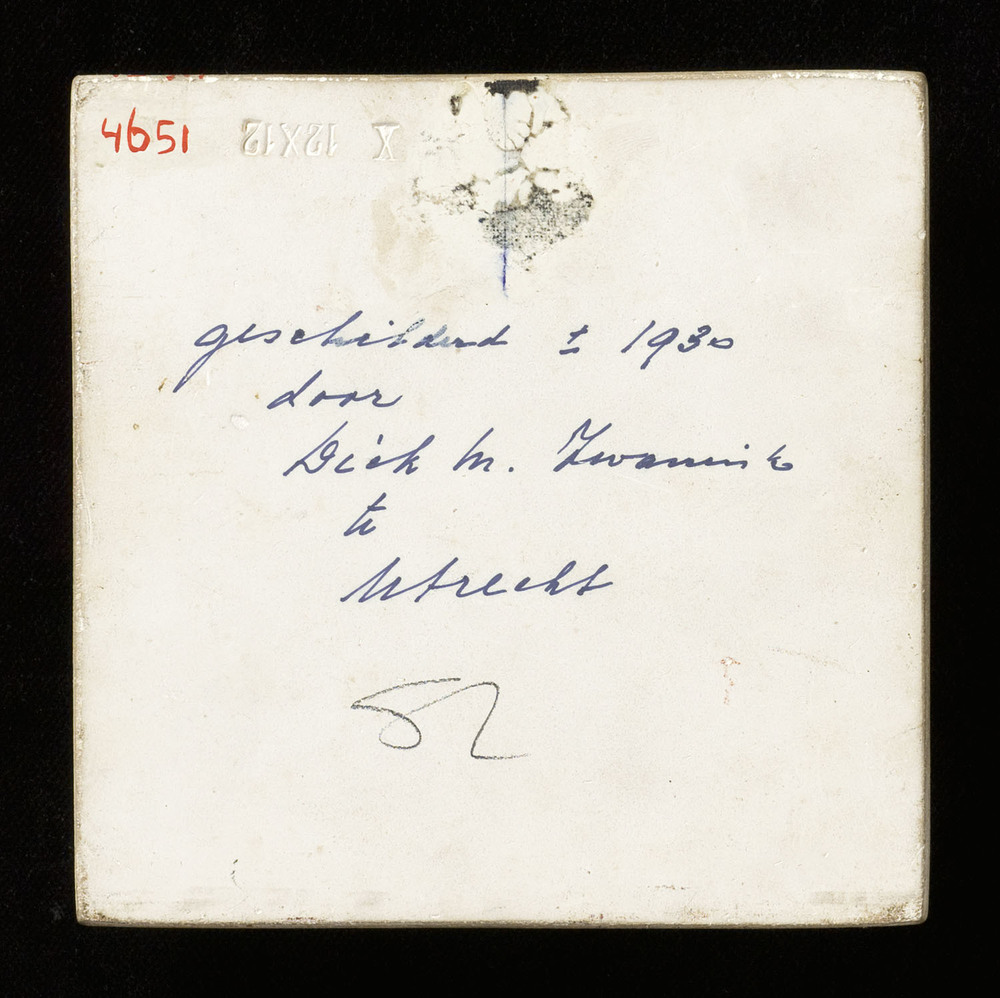 Tegel van keramiek, onderglazuur, voorstellende: Tit...