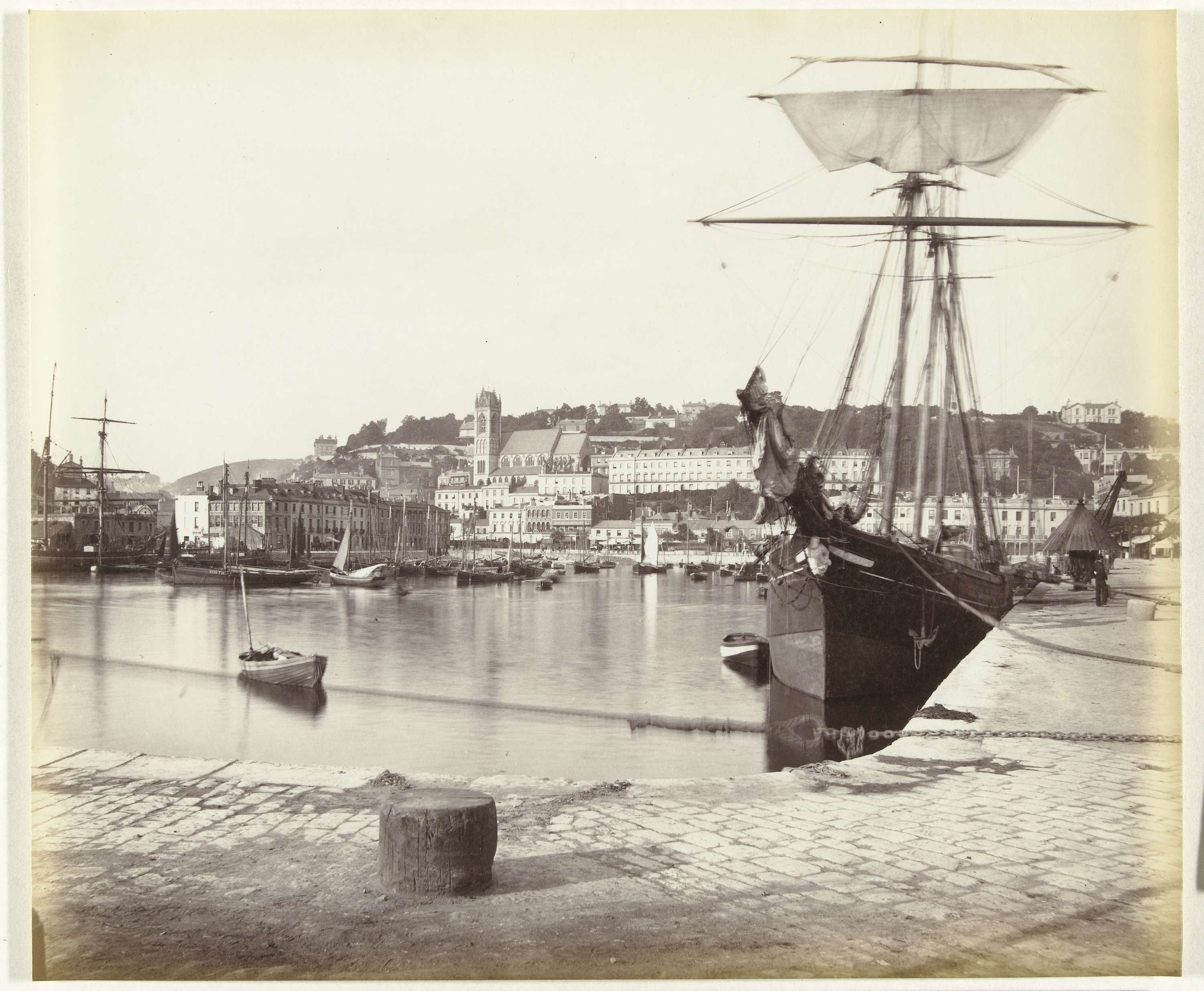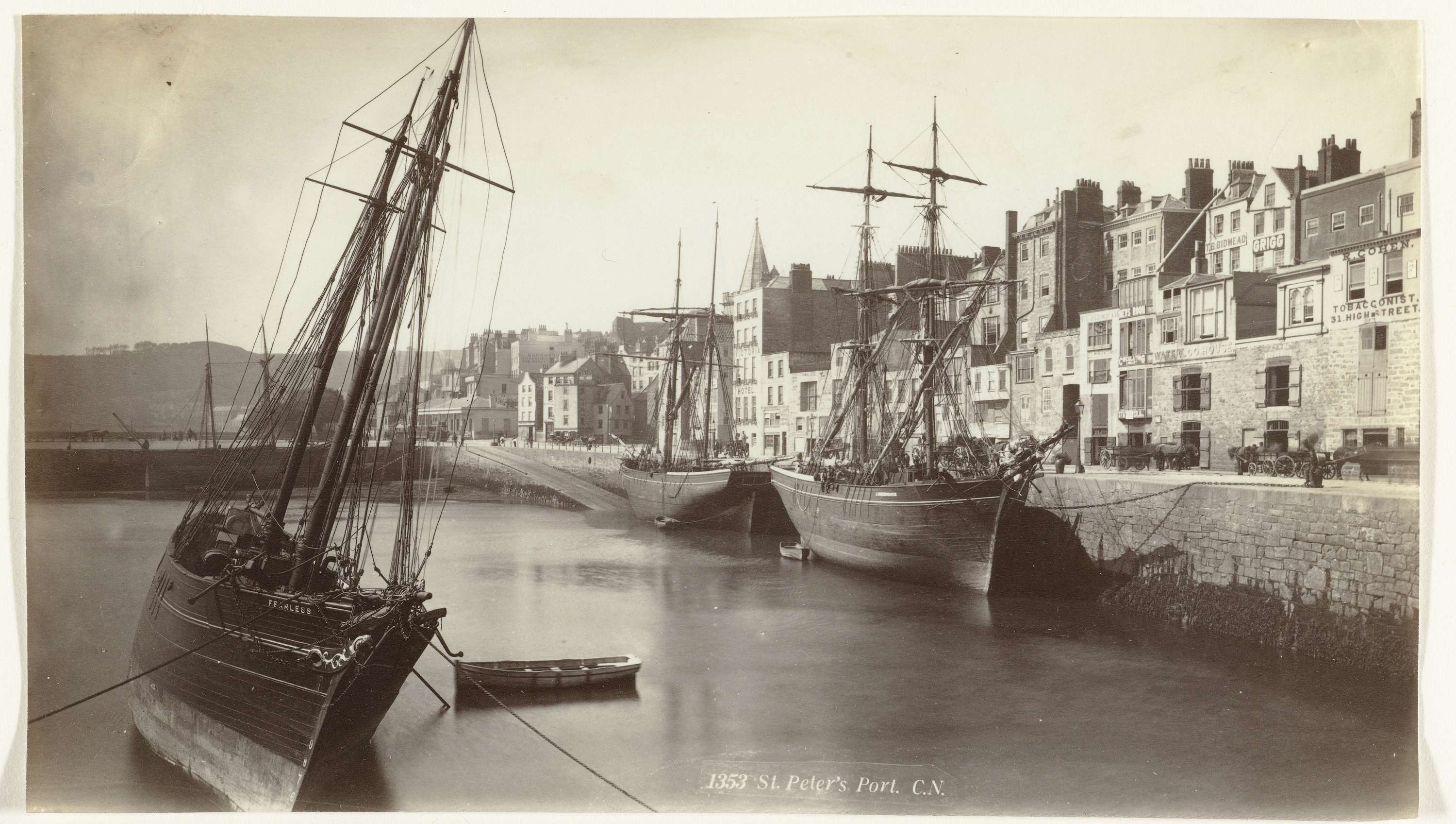 Schepen in een haven, mogelijk Saint Peter Port in G...