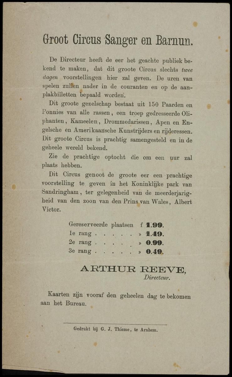 Programma Circus J. & Wed. Blanus