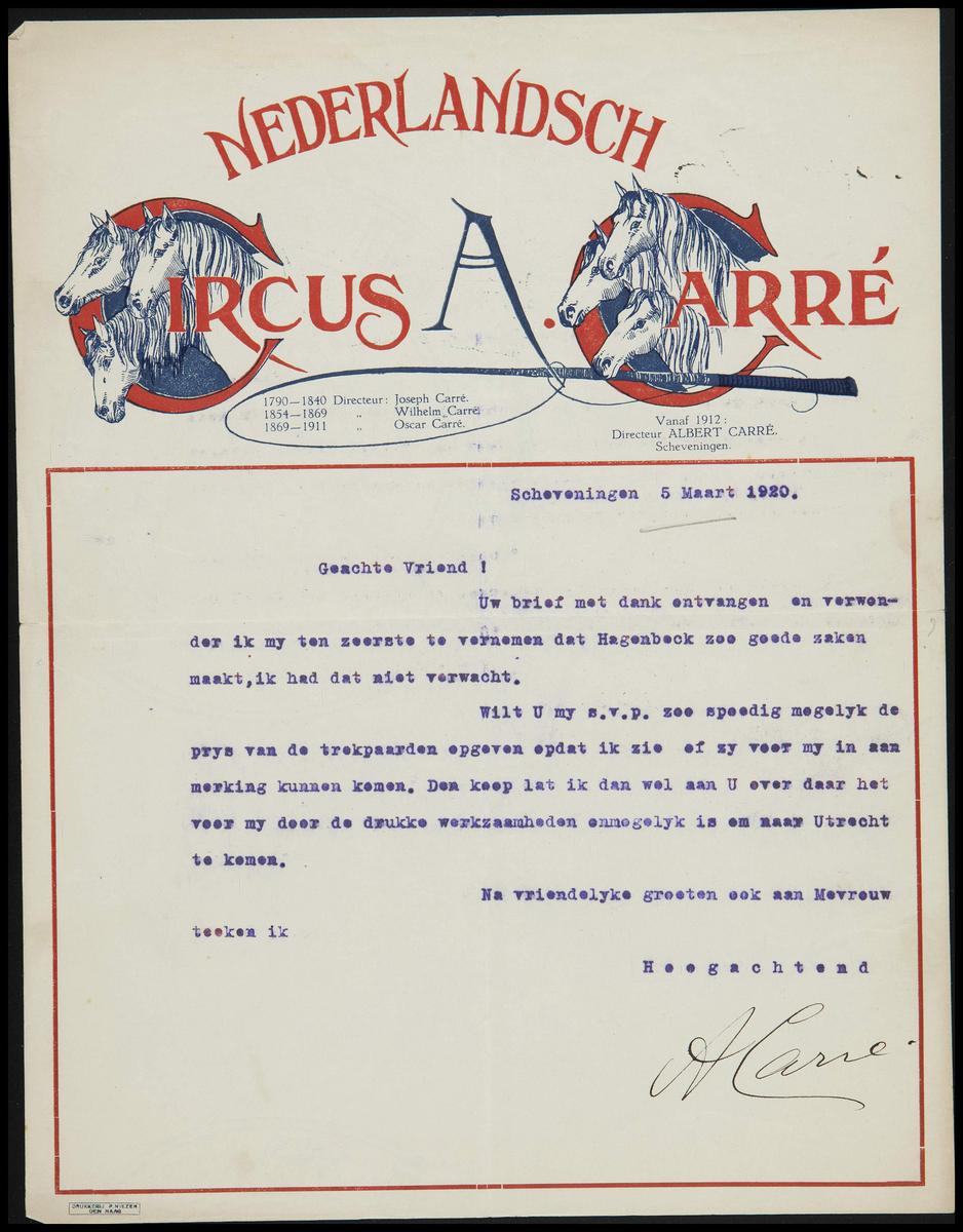 Brief Circus Albert Carré