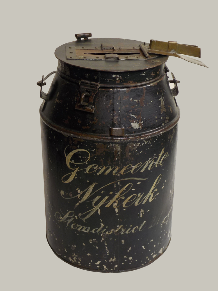 Stembus met het opschrift ‘Gemeente Nijkerk / Stemdi...