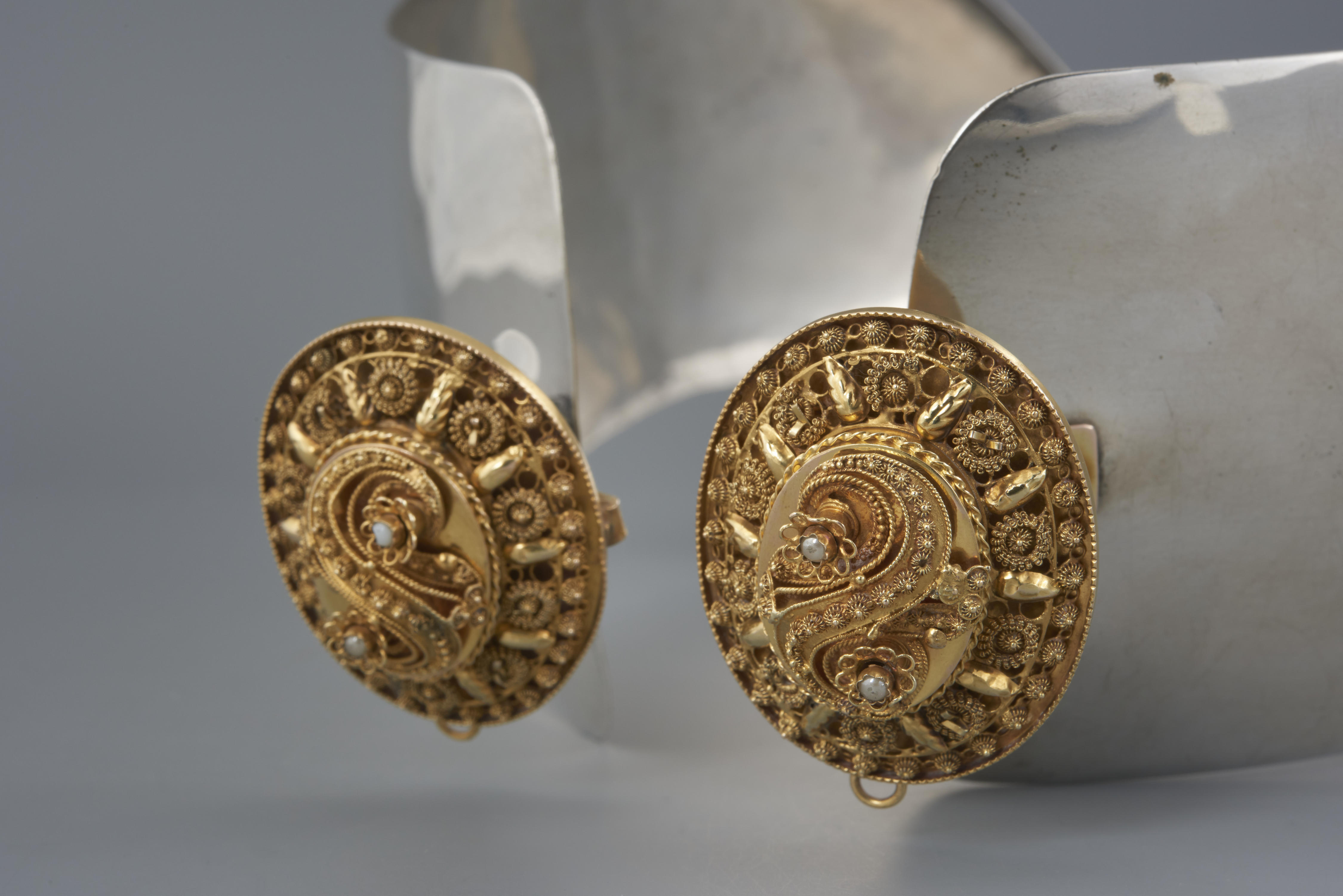 Verguld messing oorijzer met 'stikken', Zuid-Bevelan...