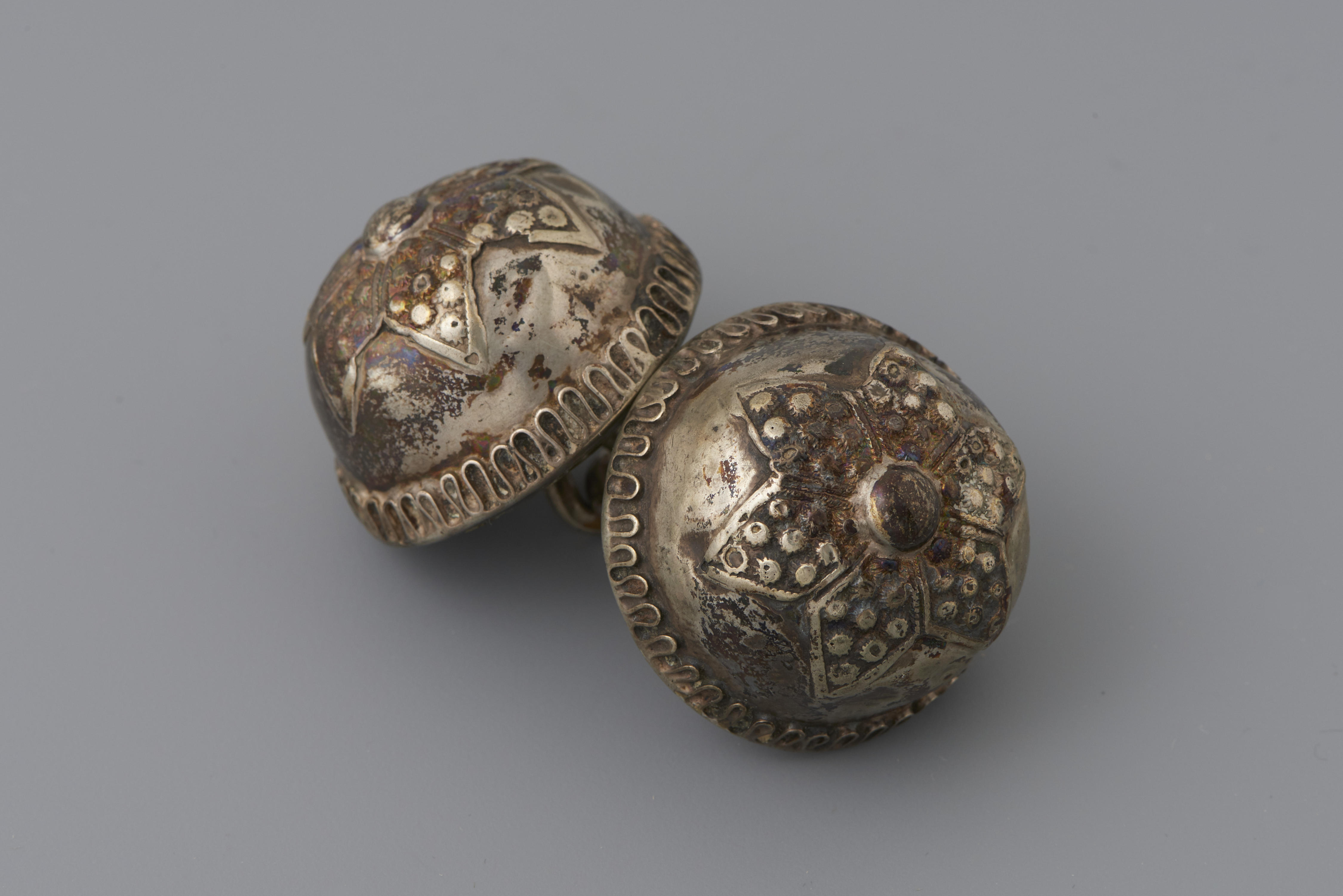 Paar zilveren keelknopen, Friesland, circa 1850