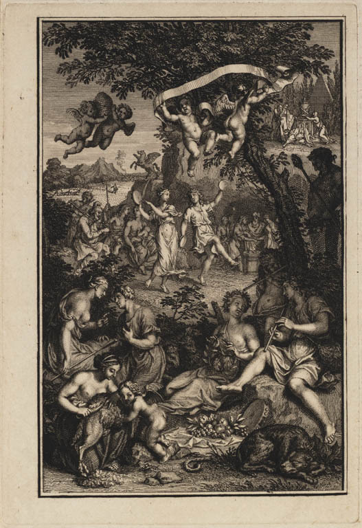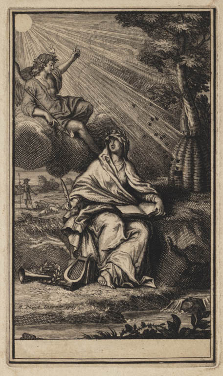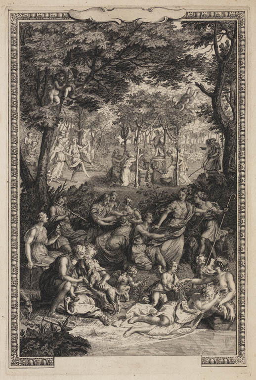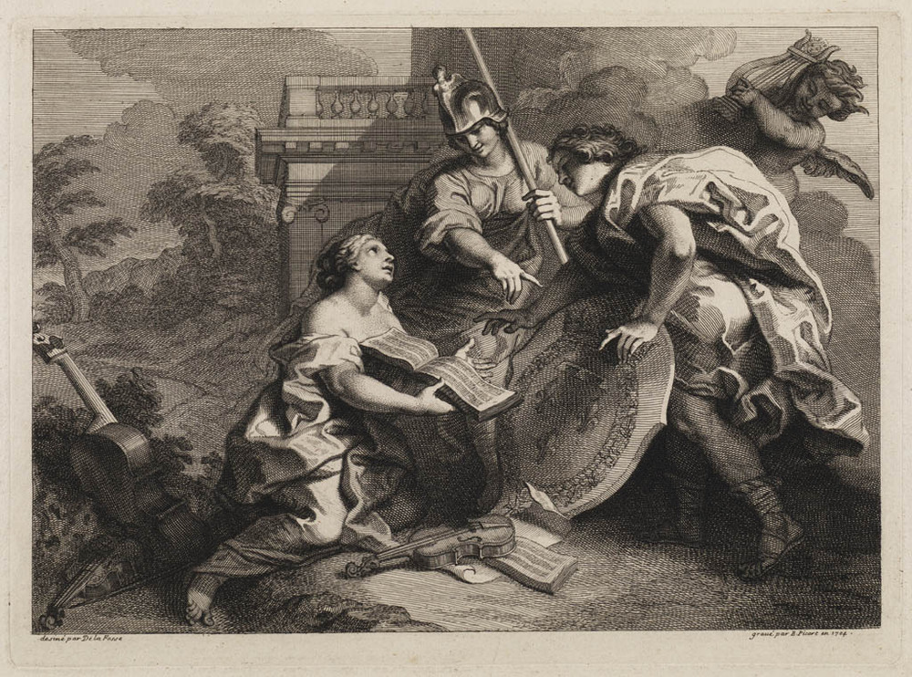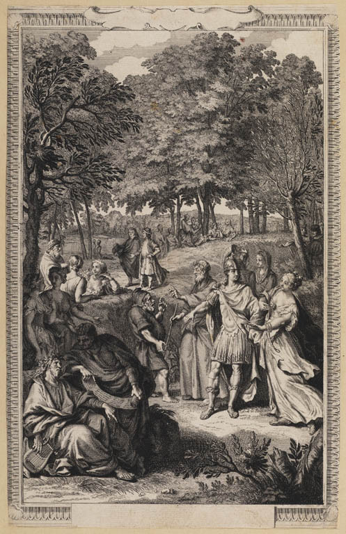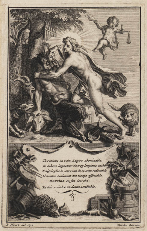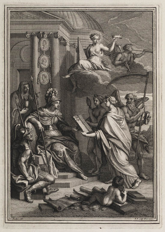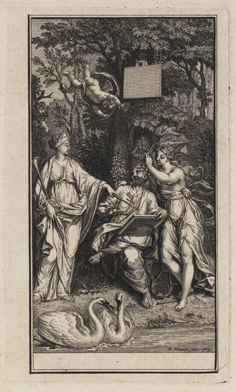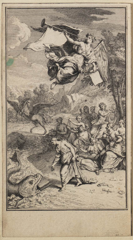 Apollo ontvangt portret van Fontenelle op Parnassus