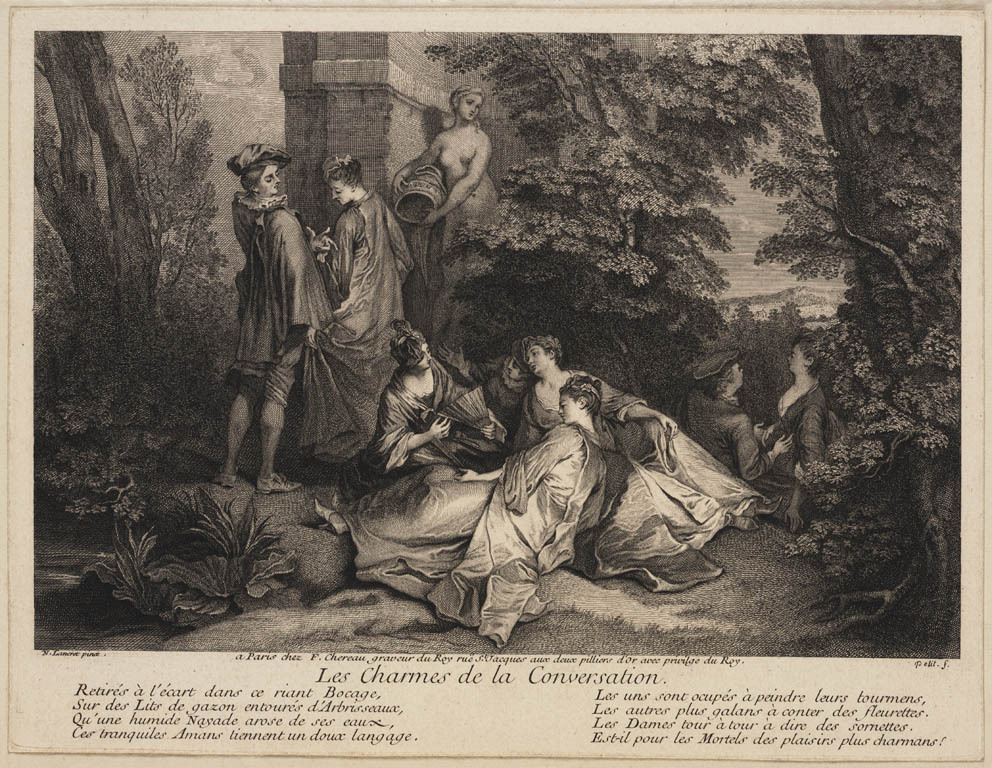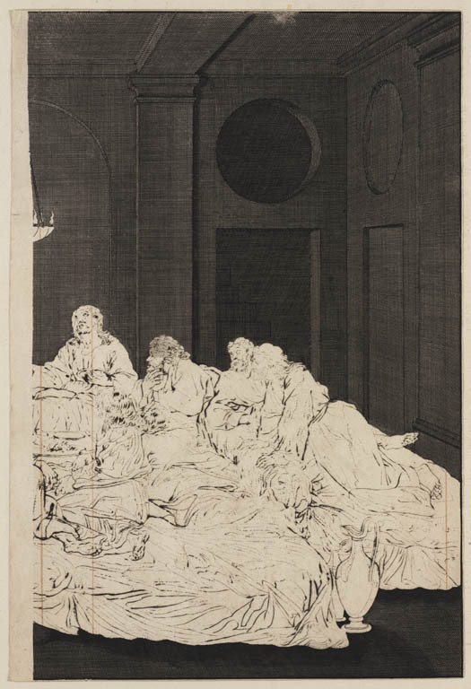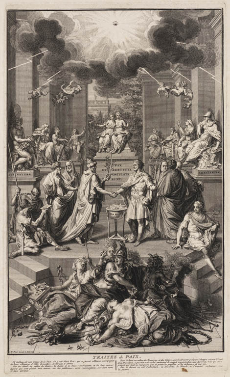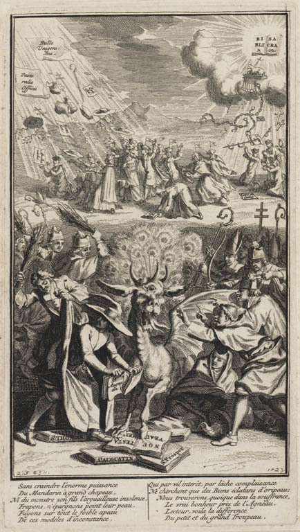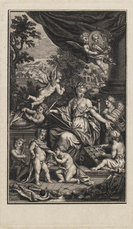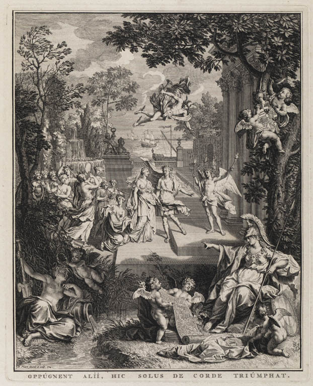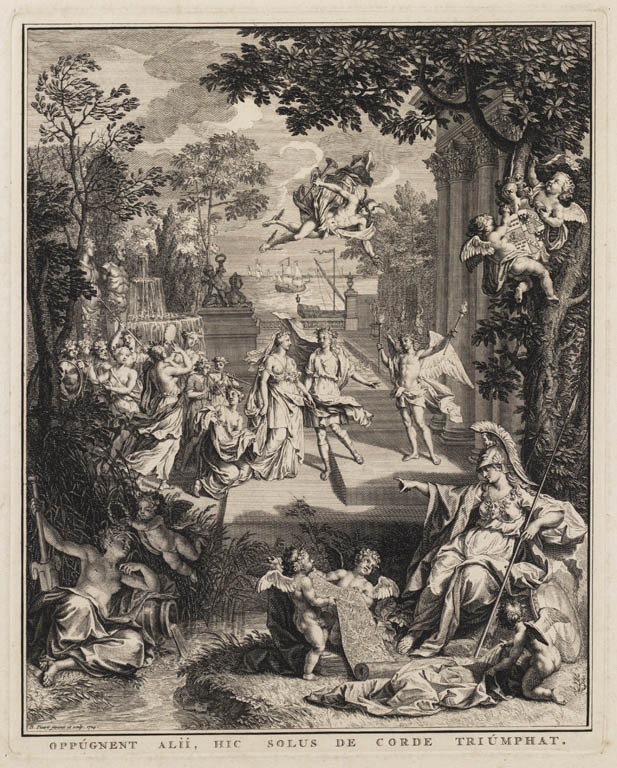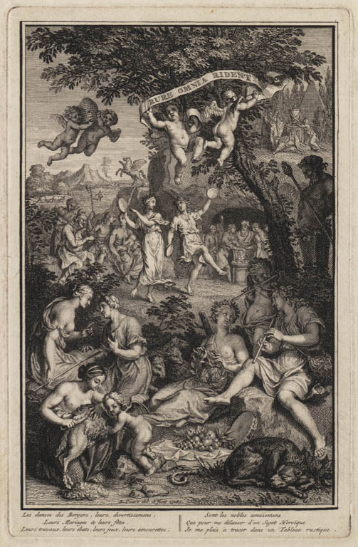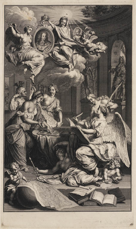 Apollo ontvangt portret van Fontenelle op Parnassus