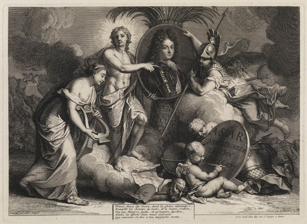 Wapen van hertog van Orléans / Titelblad van muziekboek
