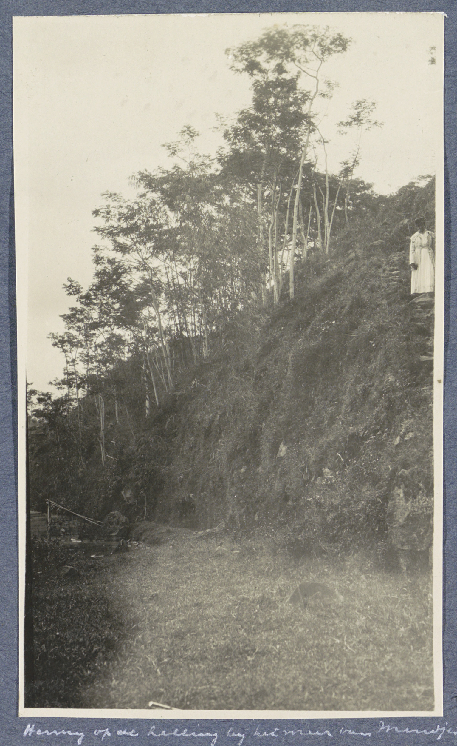 Vrouw aangeduid als 'Henny' staand op een helling bi...