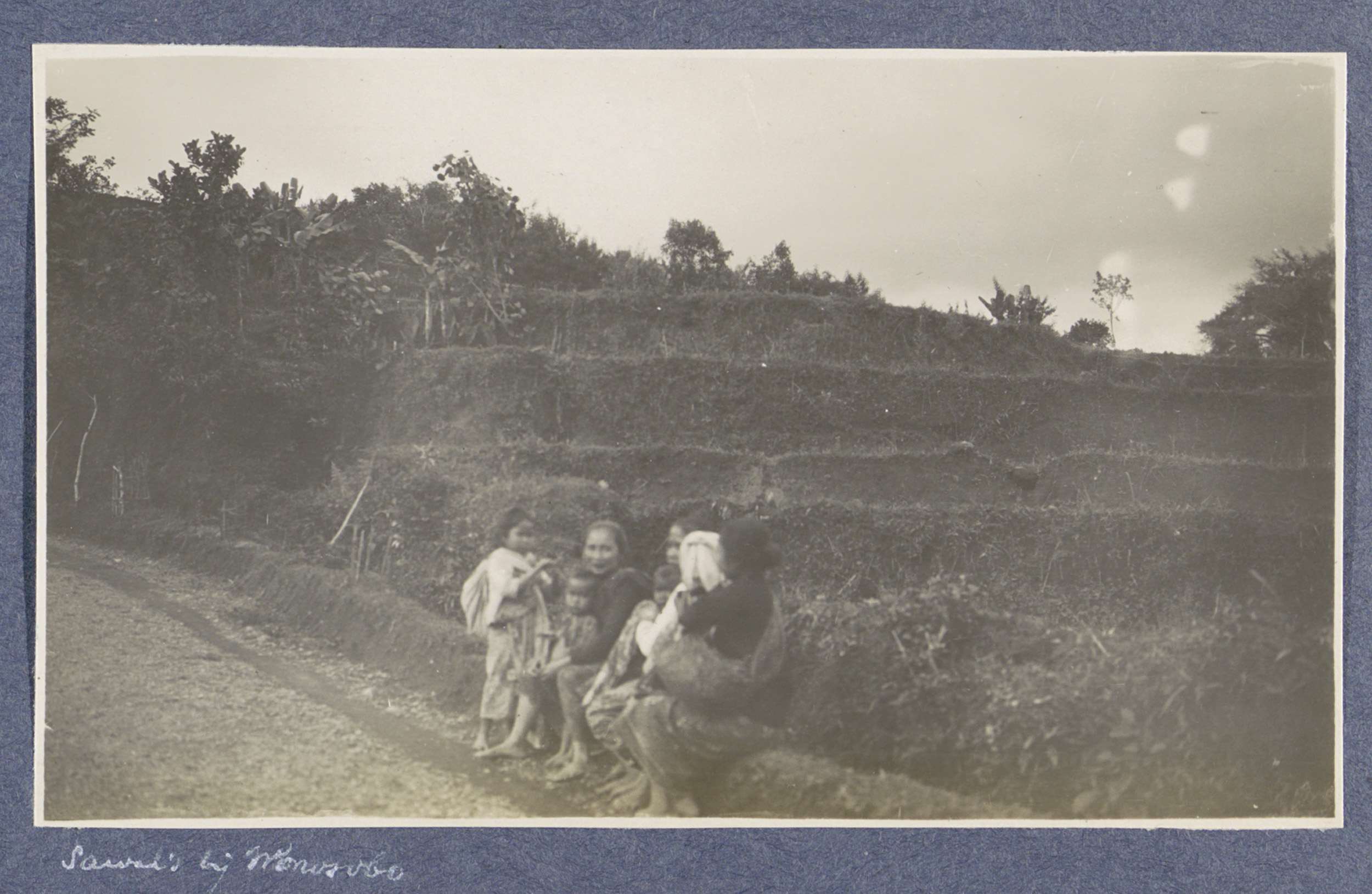 Vrouwen en kinderen zittend aan de rand van sawa's (...