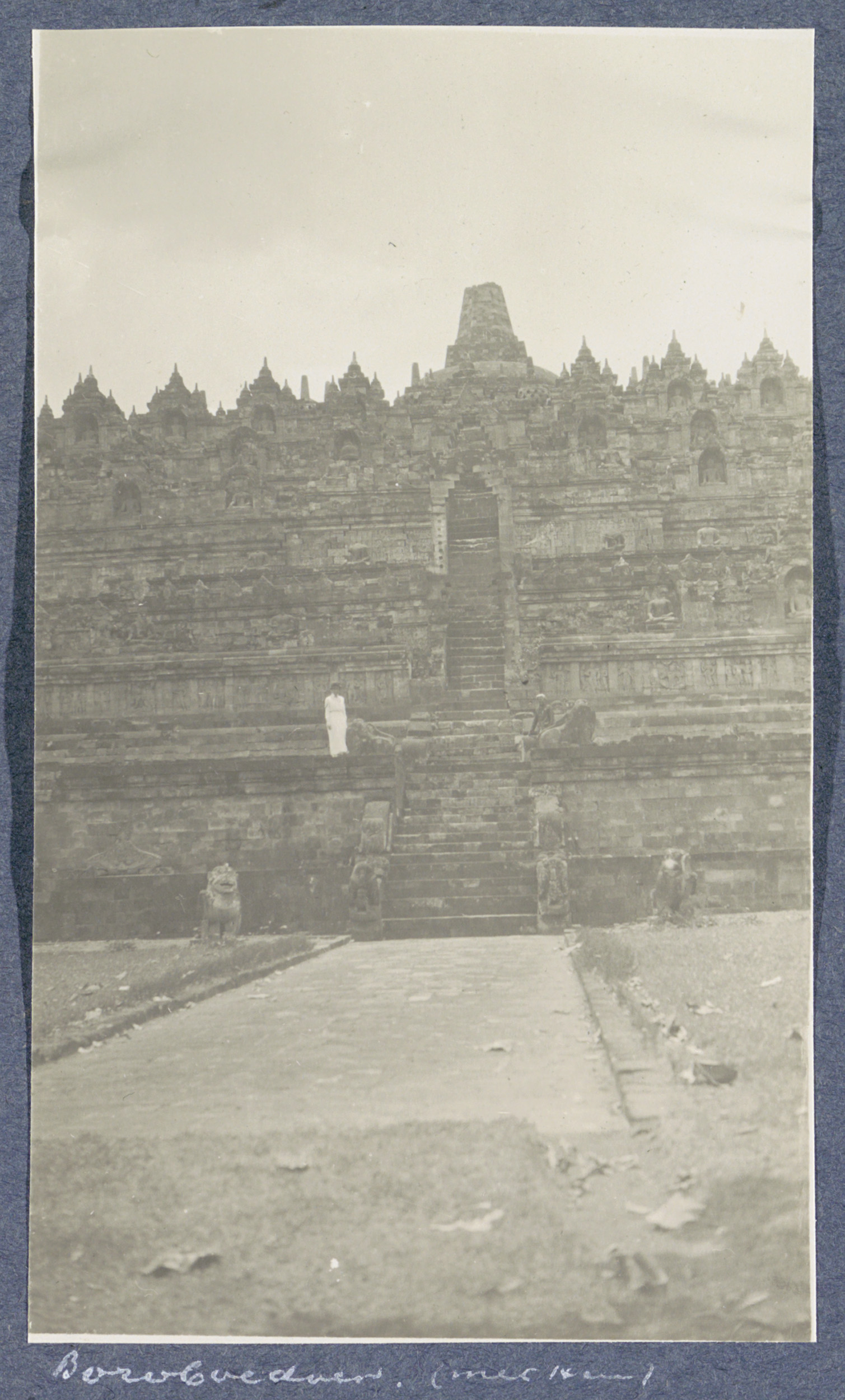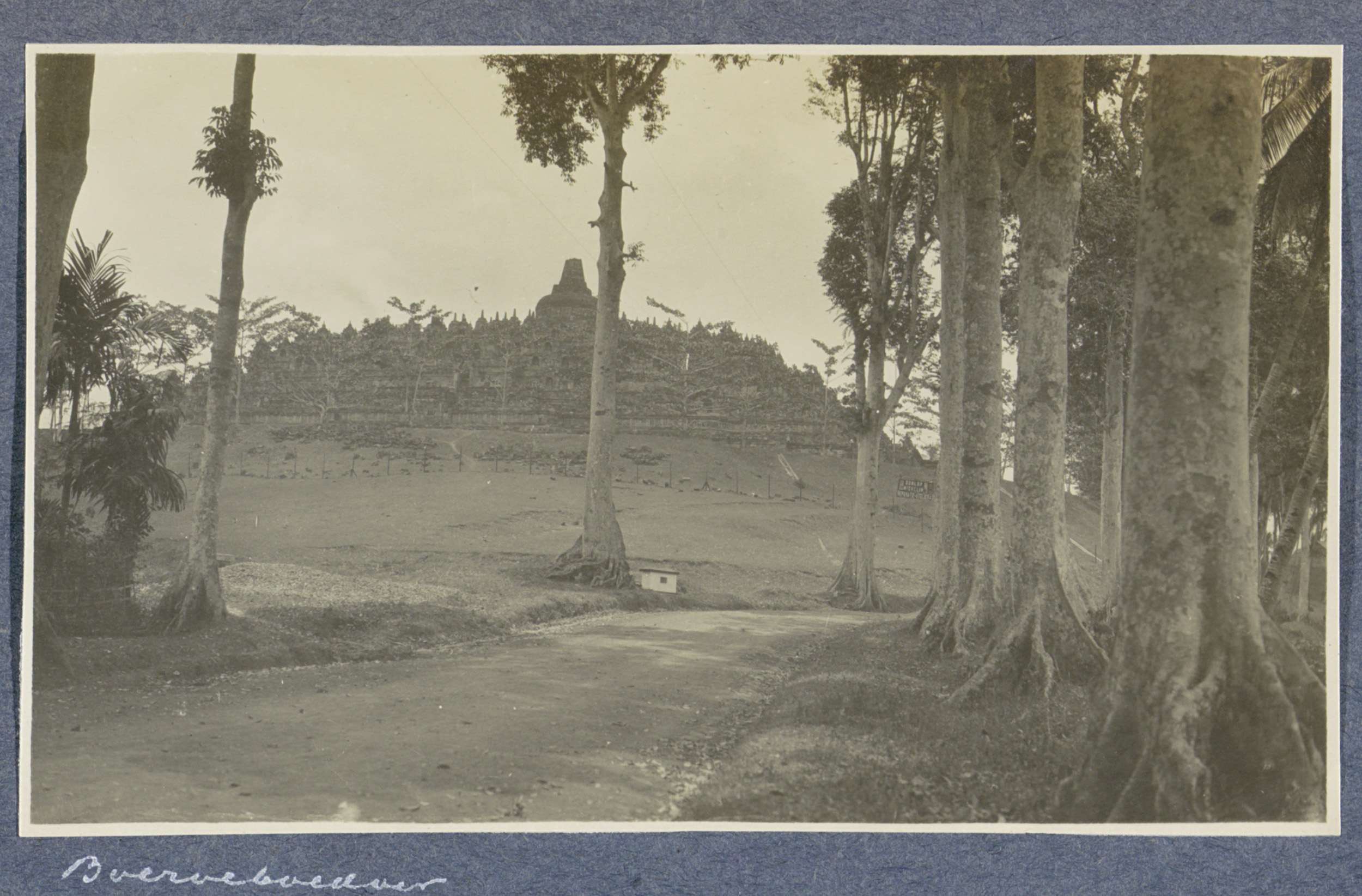 Gezicht op de Borobudur op Java met op de voorgrond ...