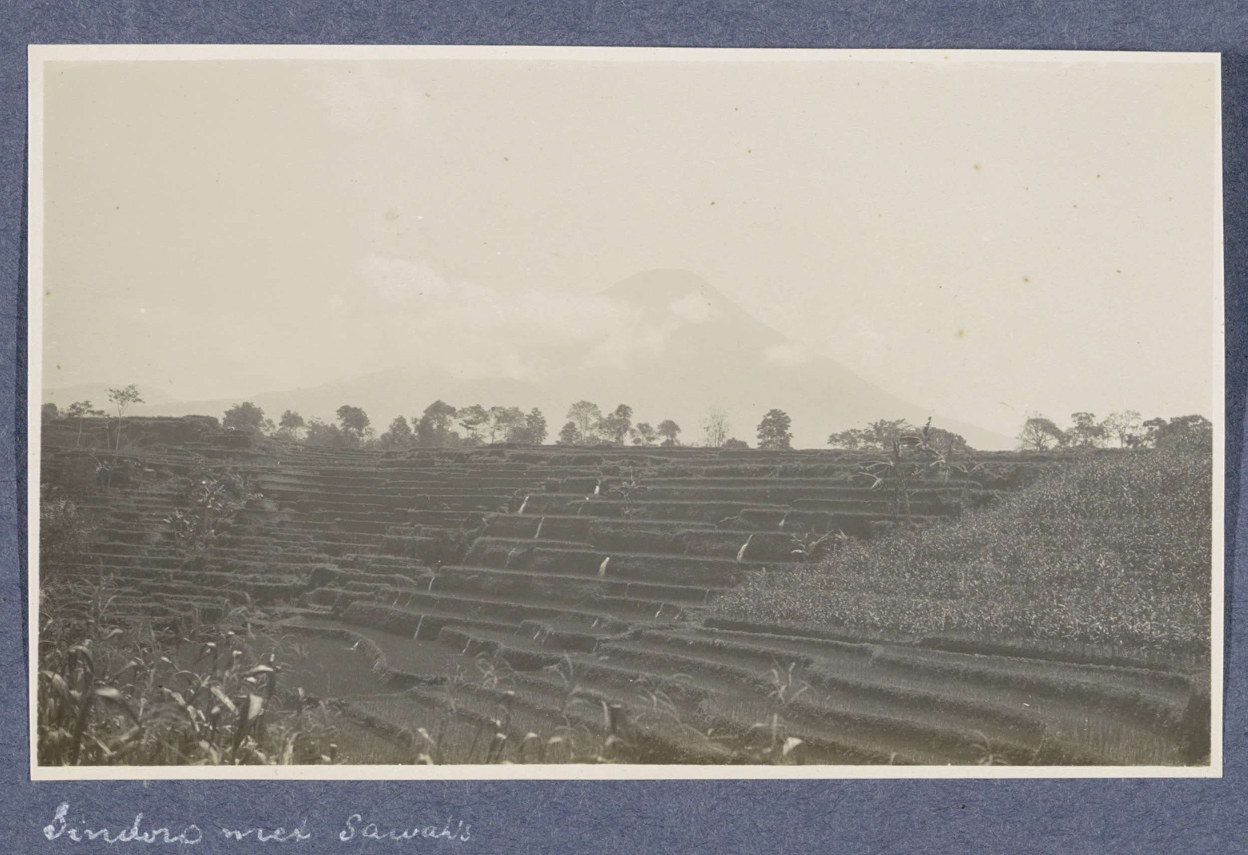 Gezicht op de vulkaan Sindoro op Java met op de voor...
