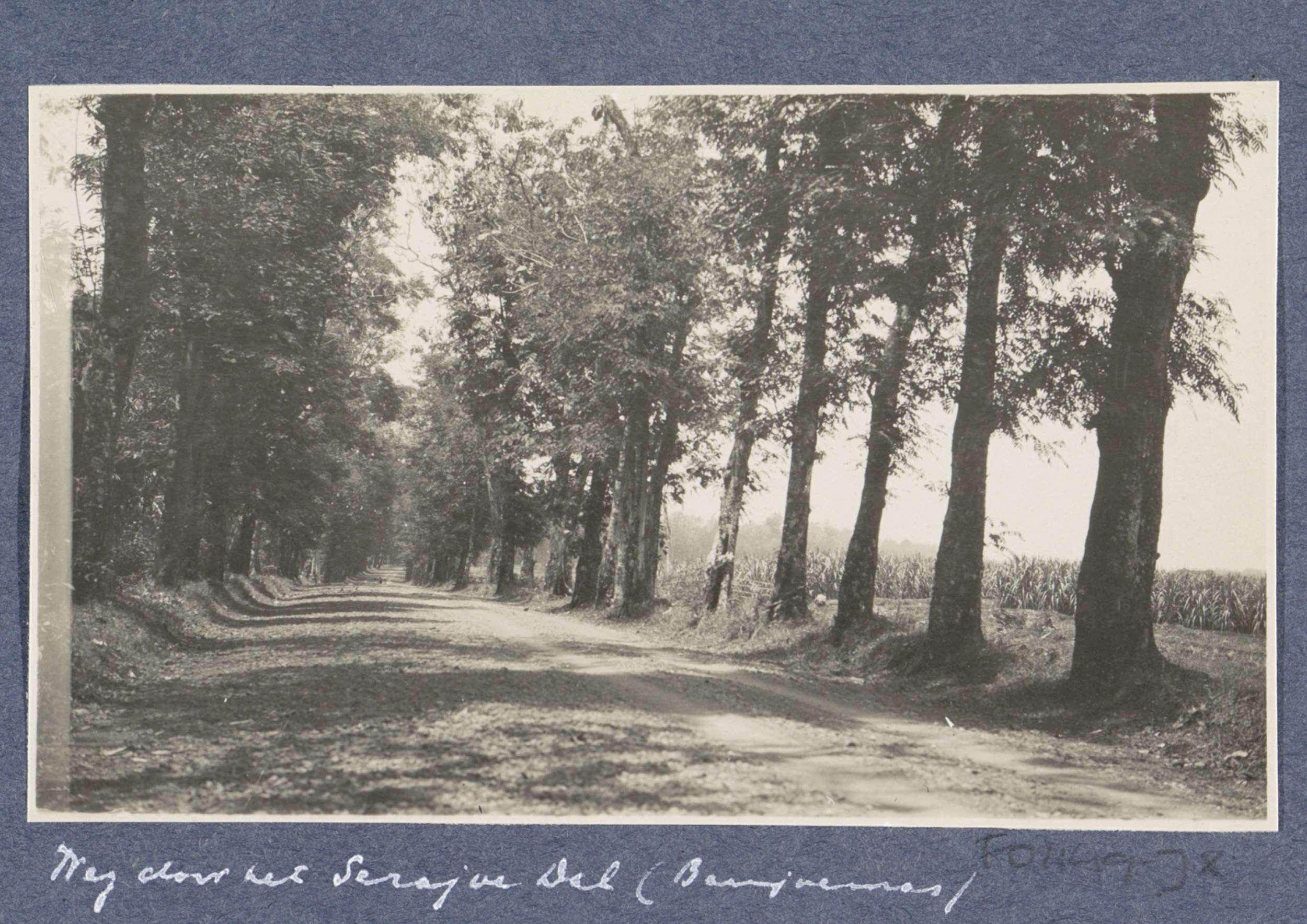 Weg met bomen door het dal van de Serayu bij Banjoem...