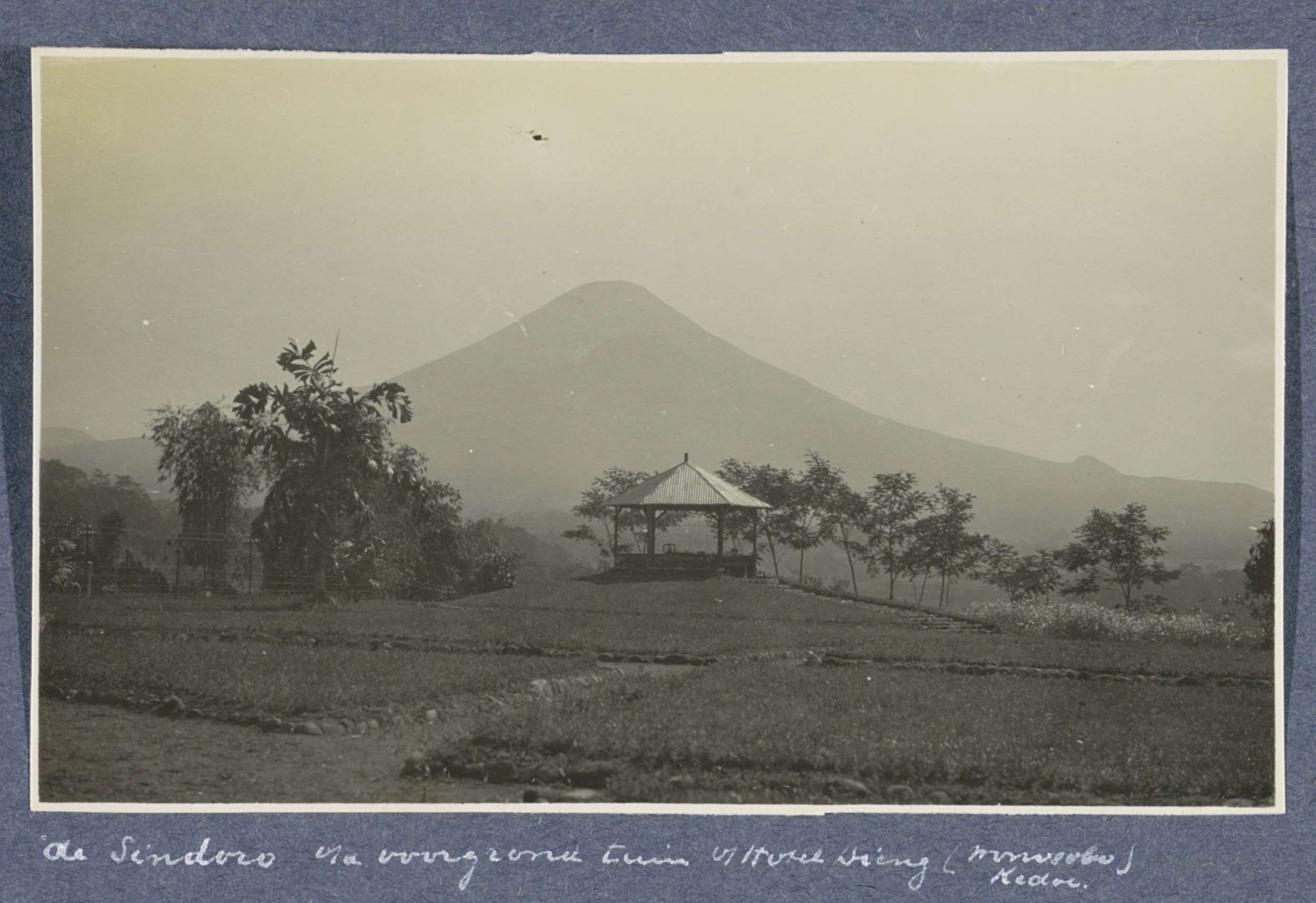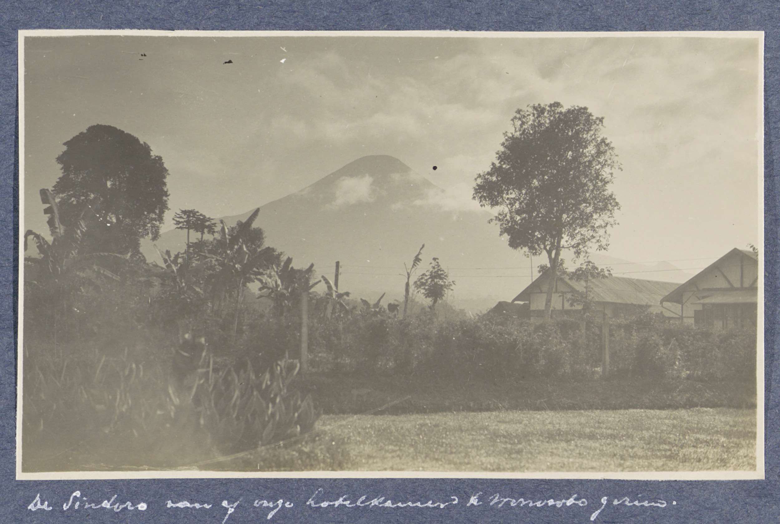 Vulkaan Sindoro op Java gezien vanuit de voortuin va...