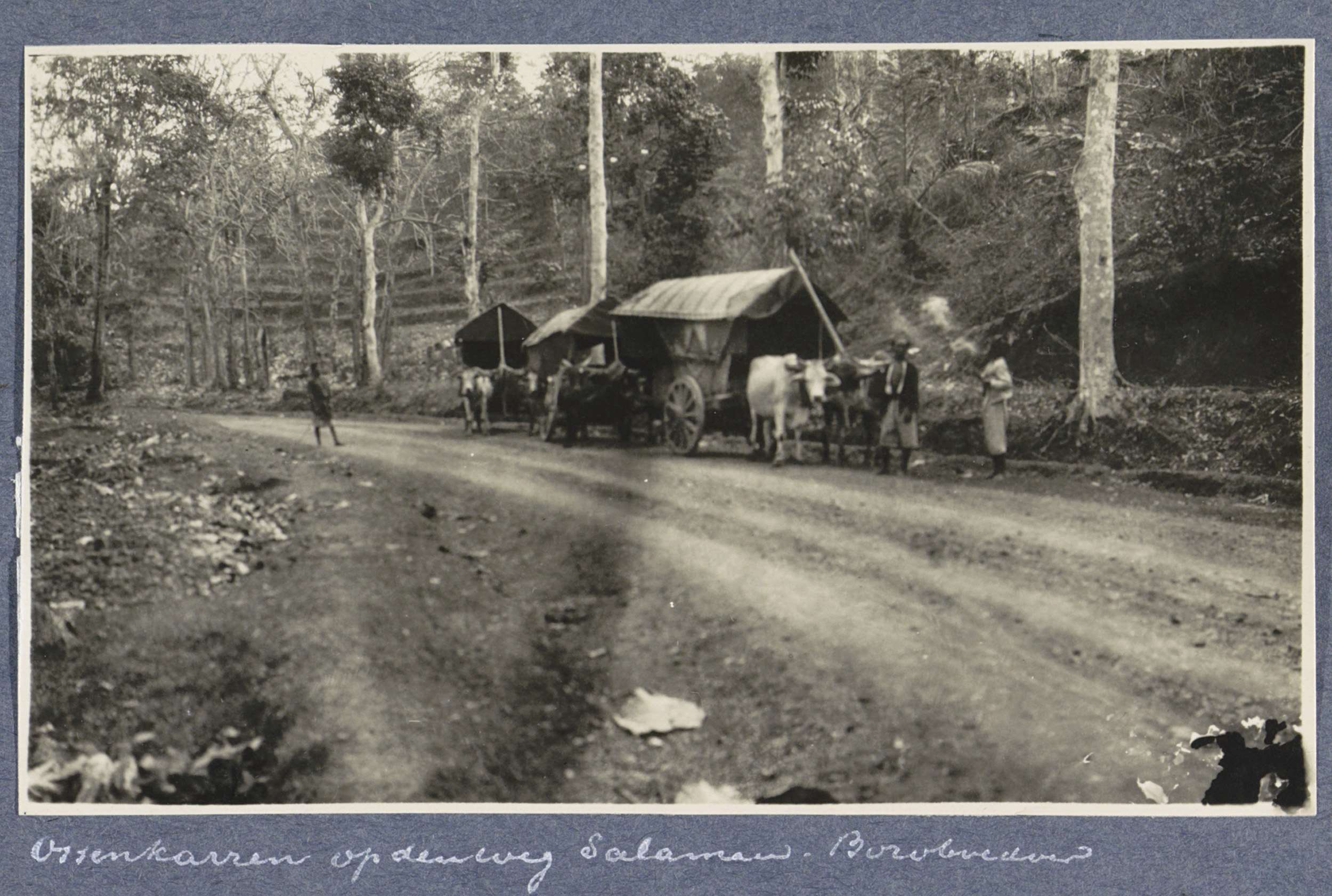 Ossenkarren op de weg van Salaman naar Borobudur op ...