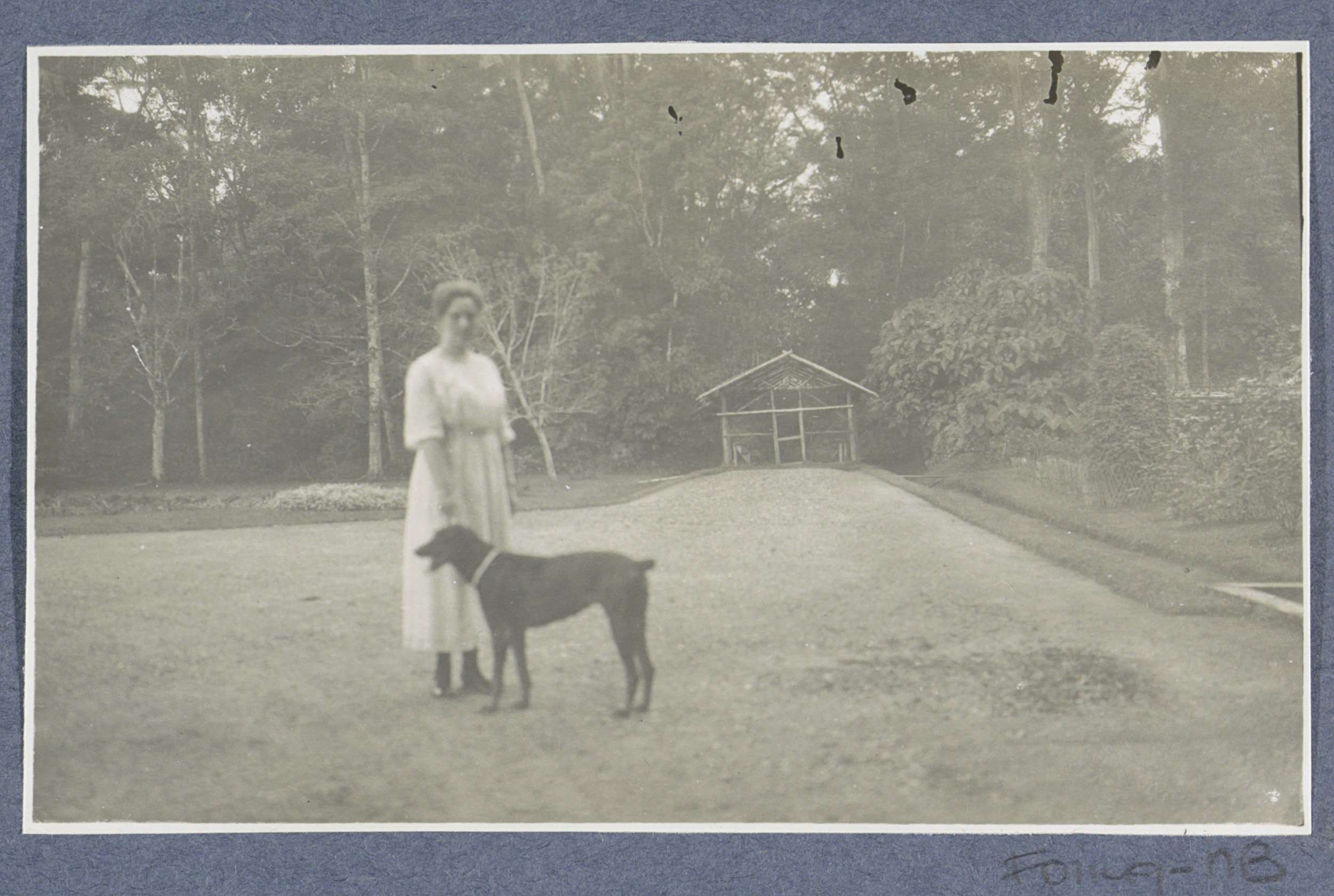 Vrouw en hond op een erf in Namoe-Trassi op Sumatra