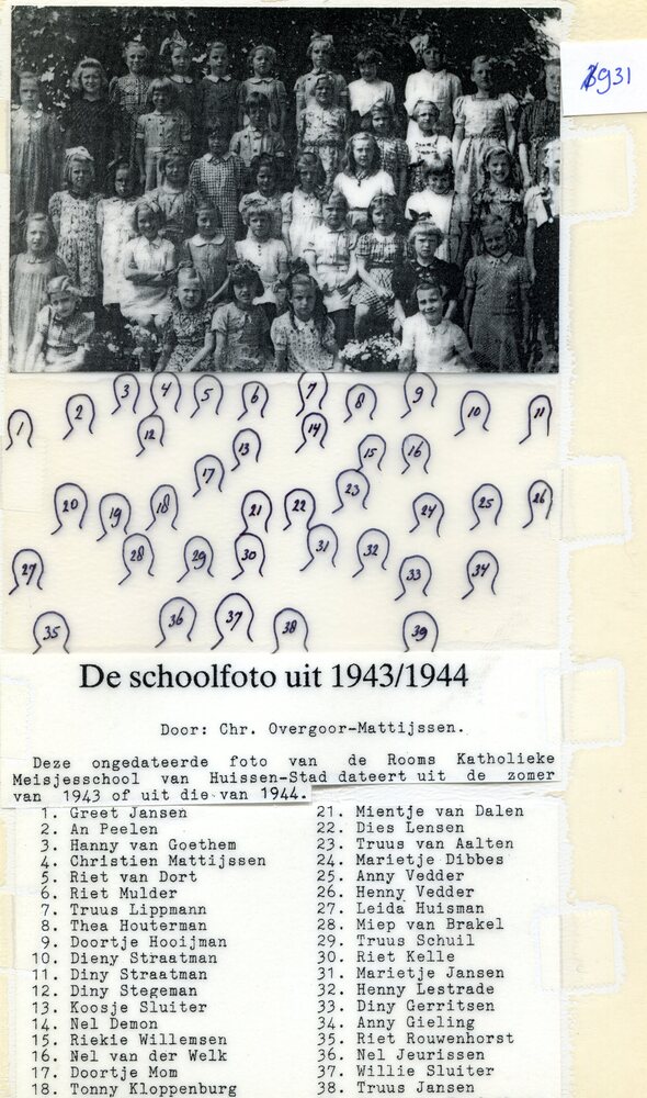 Klassenfoto Agnesschool in de Langekerkstraat ca 1943