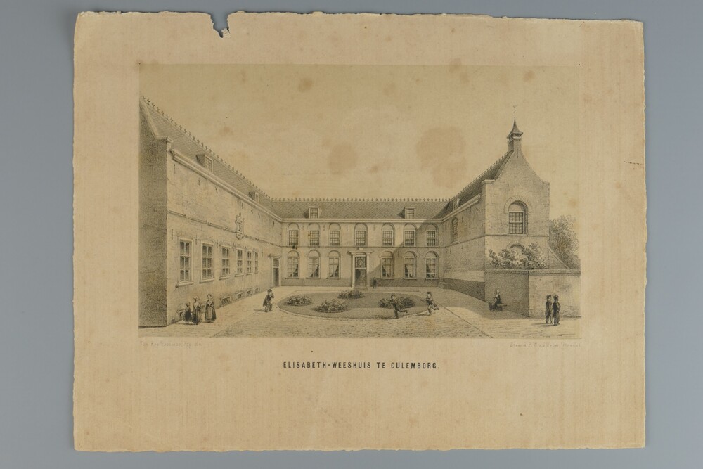 Litho, voorstellende de binnenplaats van het Elisabe...