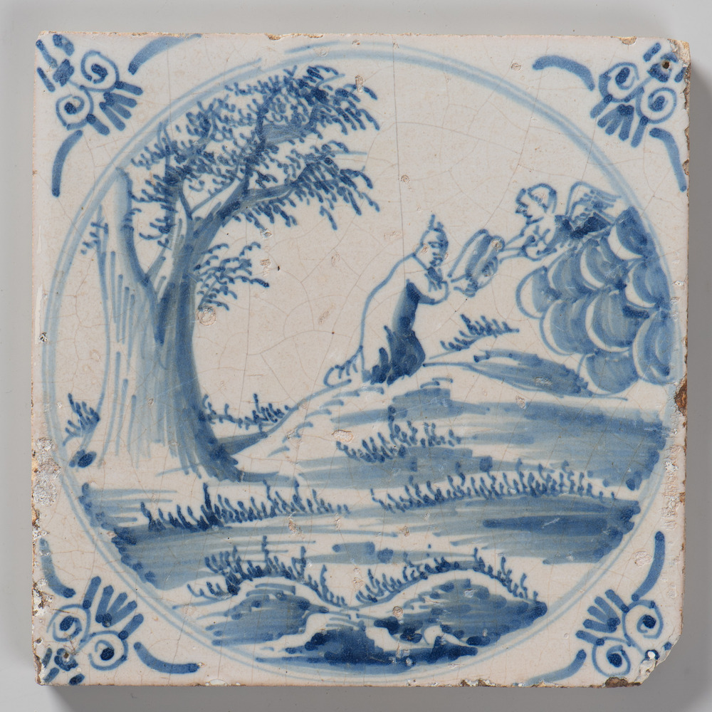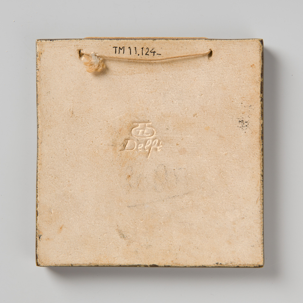 tegel van aardewerk met tinglazuur, voorstellende: k...