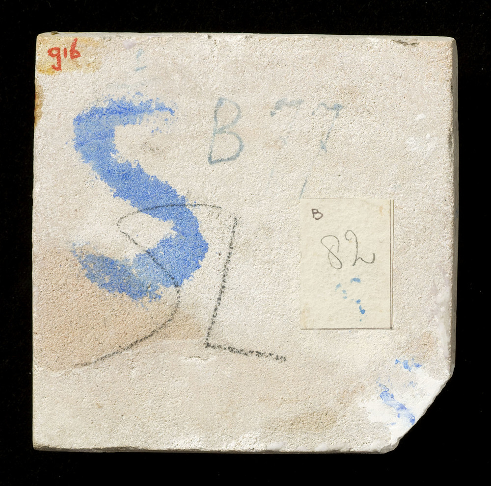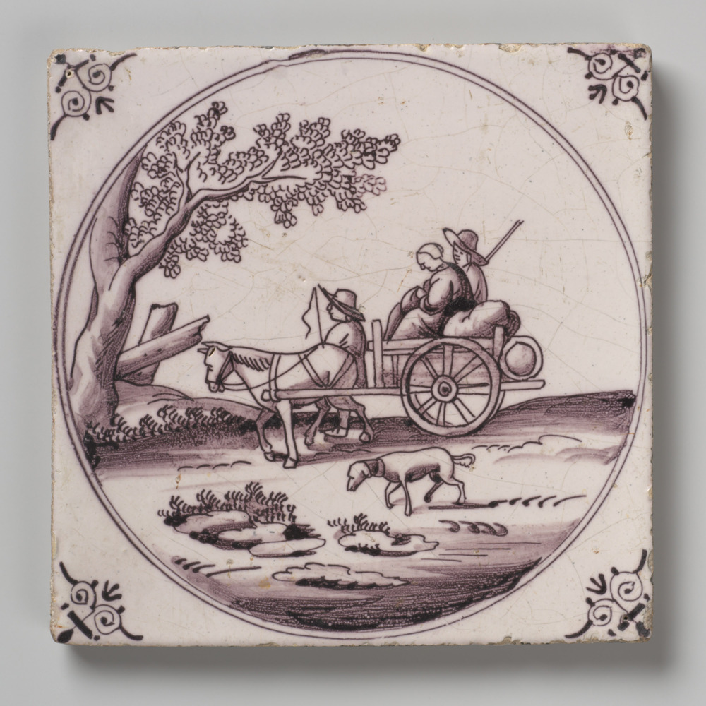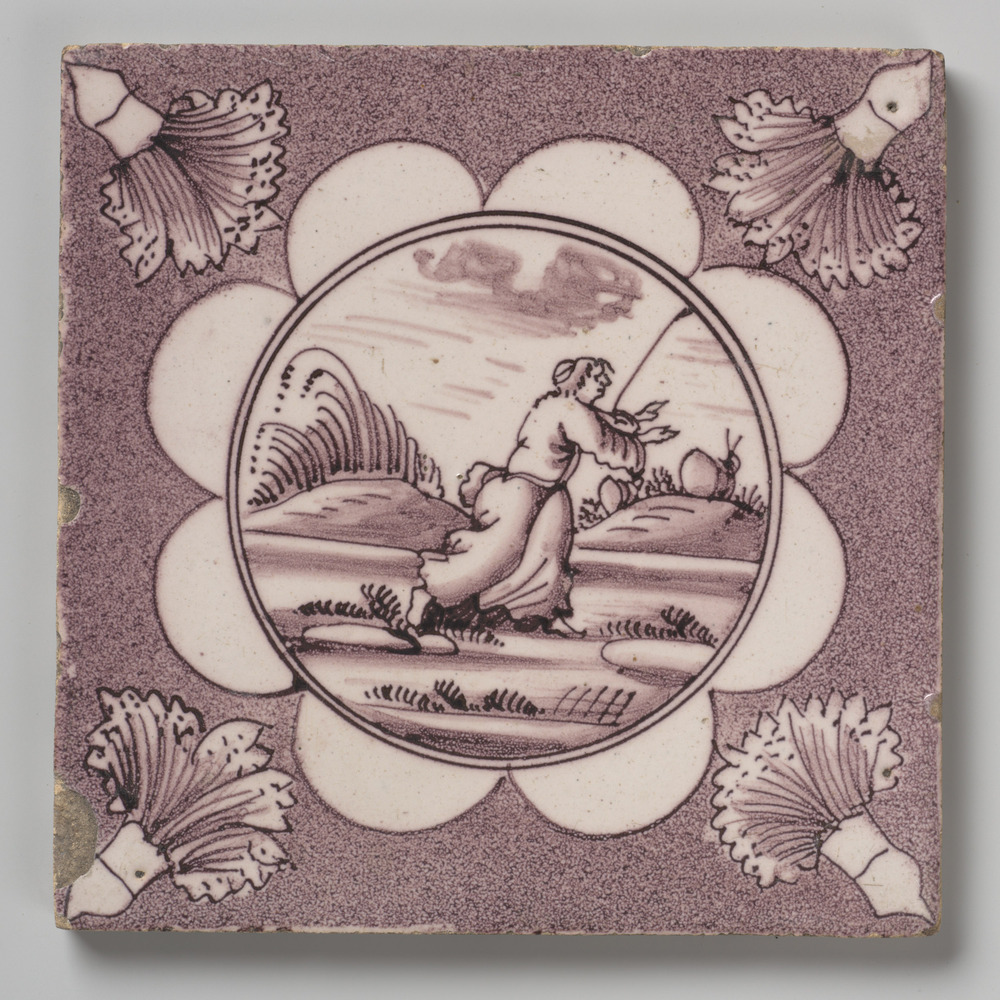 Tegel van keramiek met tinglazuur, voorstellende: wa...