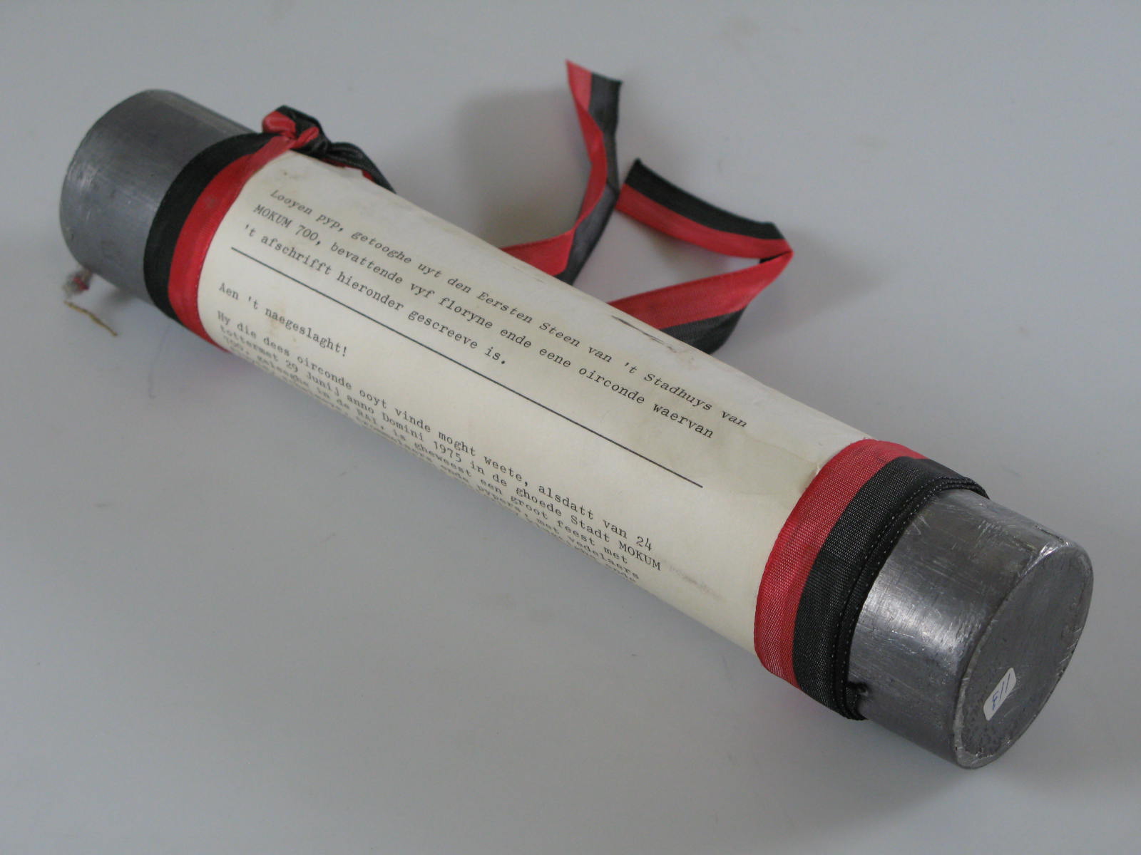 Capsule met oorkonde 'Aen 't naegeslaght'