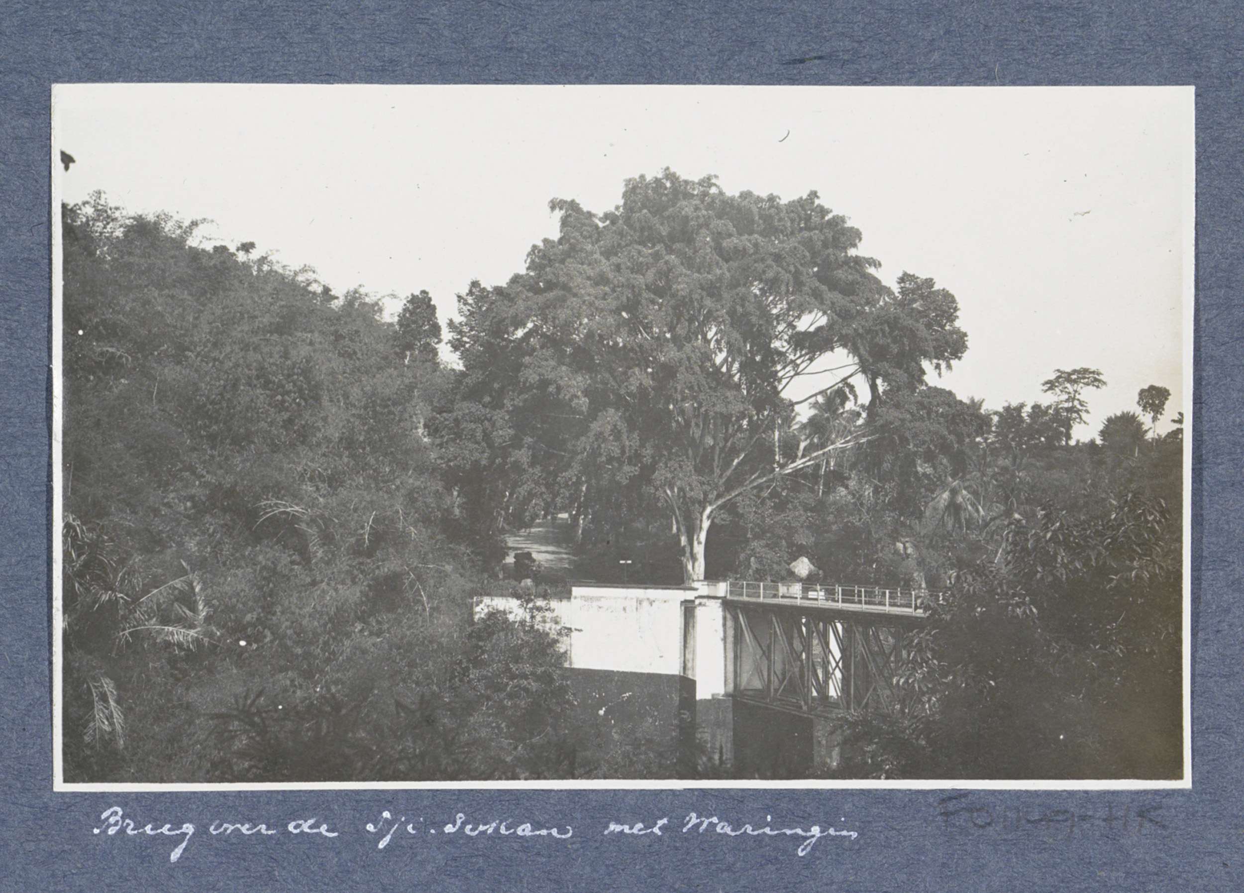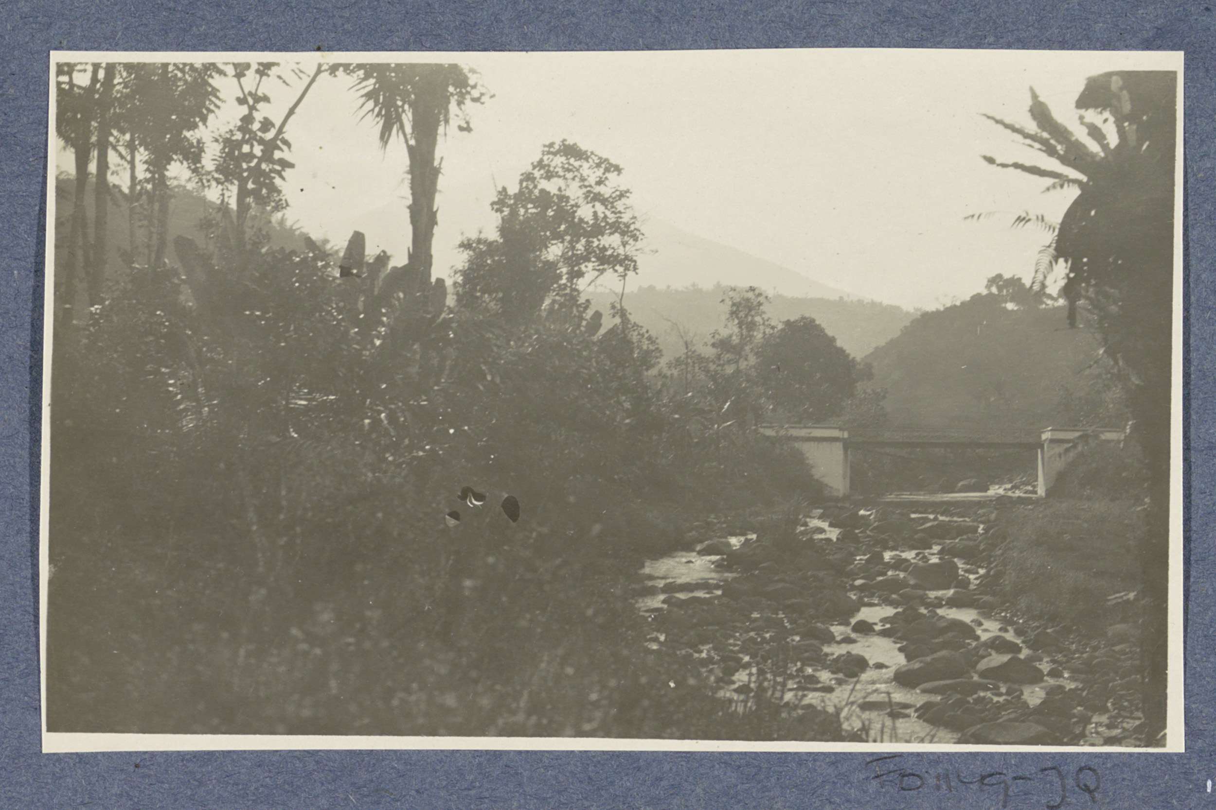 Brug over de Tjisokanrivier in Preanger op Java met ...