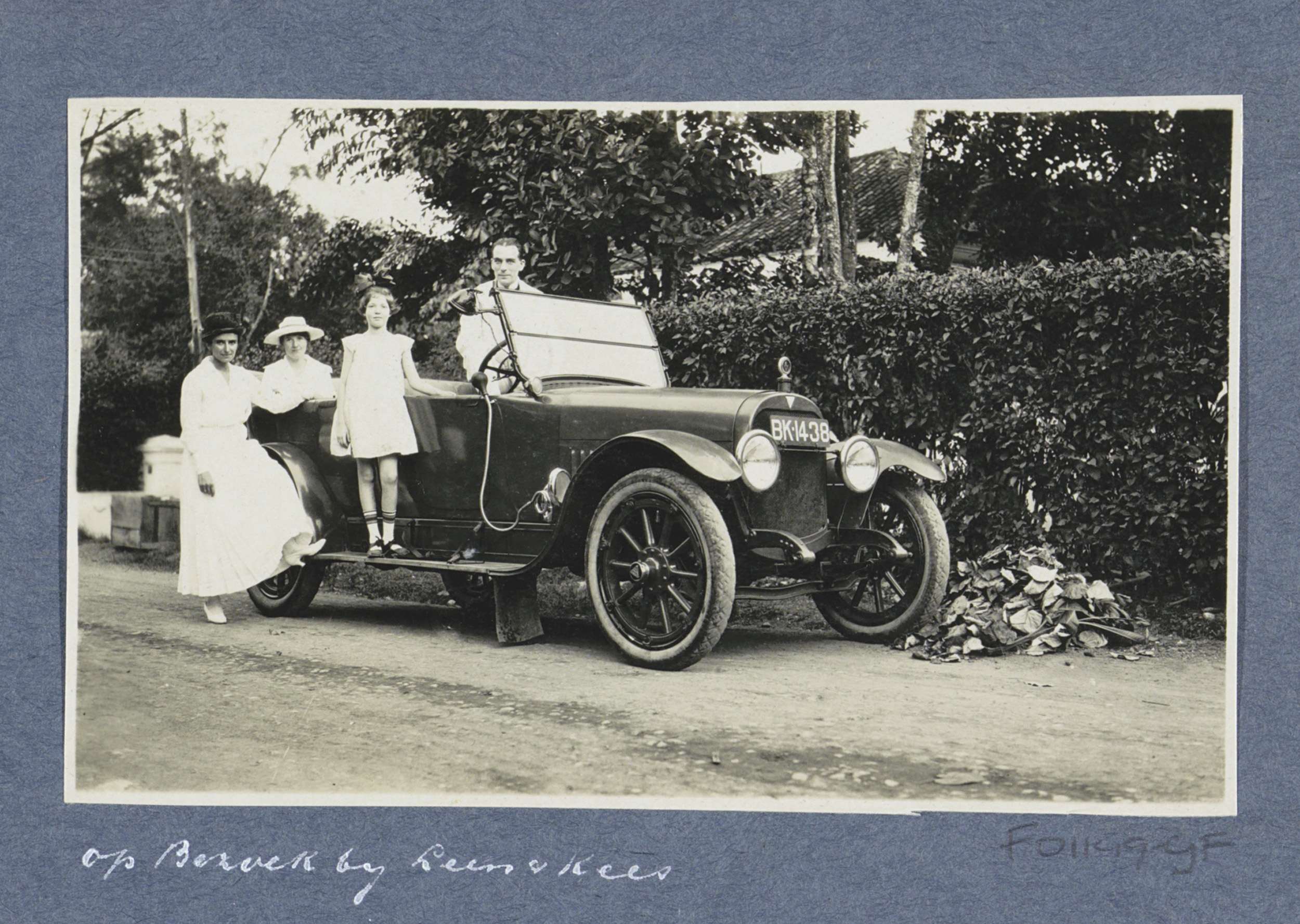 Groepsportret bij auto's aan het Meer van Bengadis o...