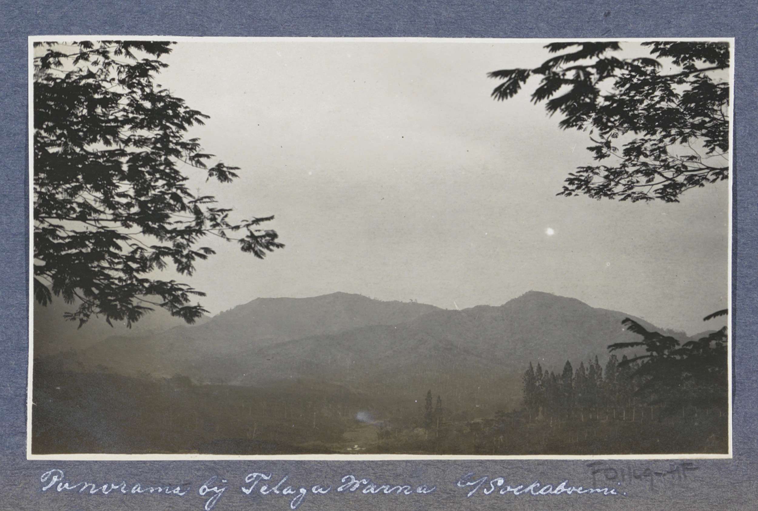 Gezicht op bergen bij de Telaga Warna en Soekaboemi