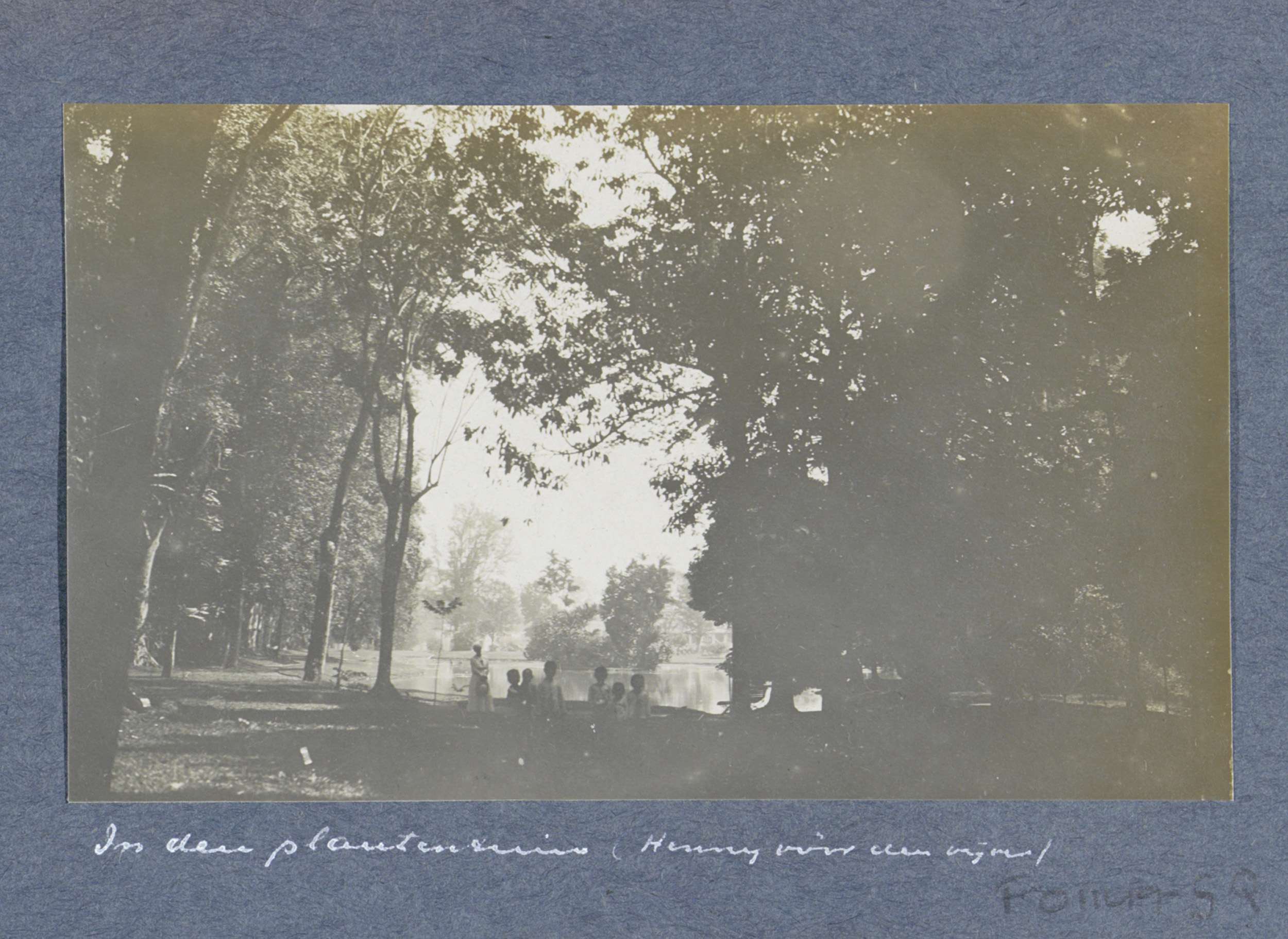 Gezelschap poserend bij een vijver in 's Lands Plant...