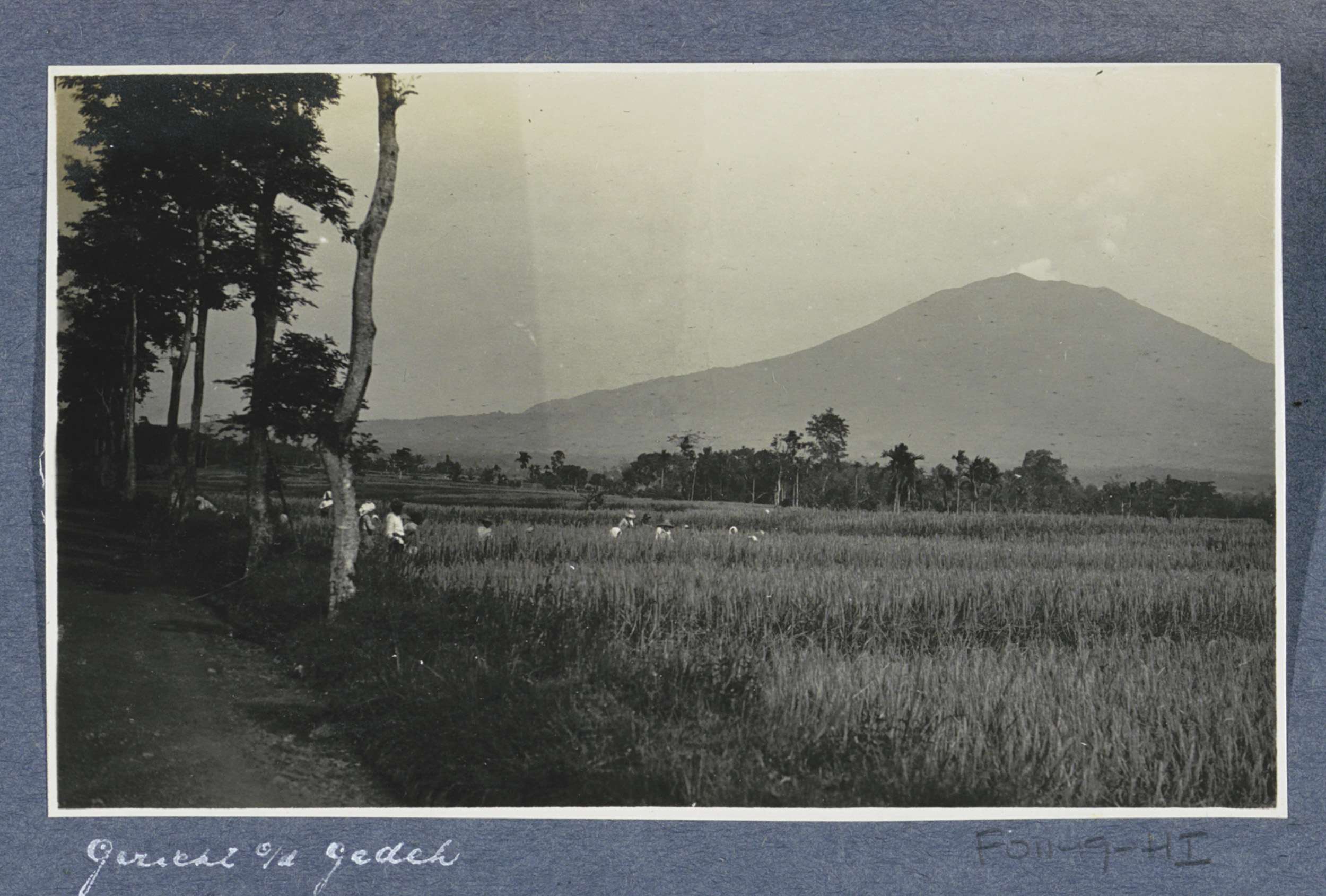 Vulkaan Gede in Preanger op Java gezien over velden ...