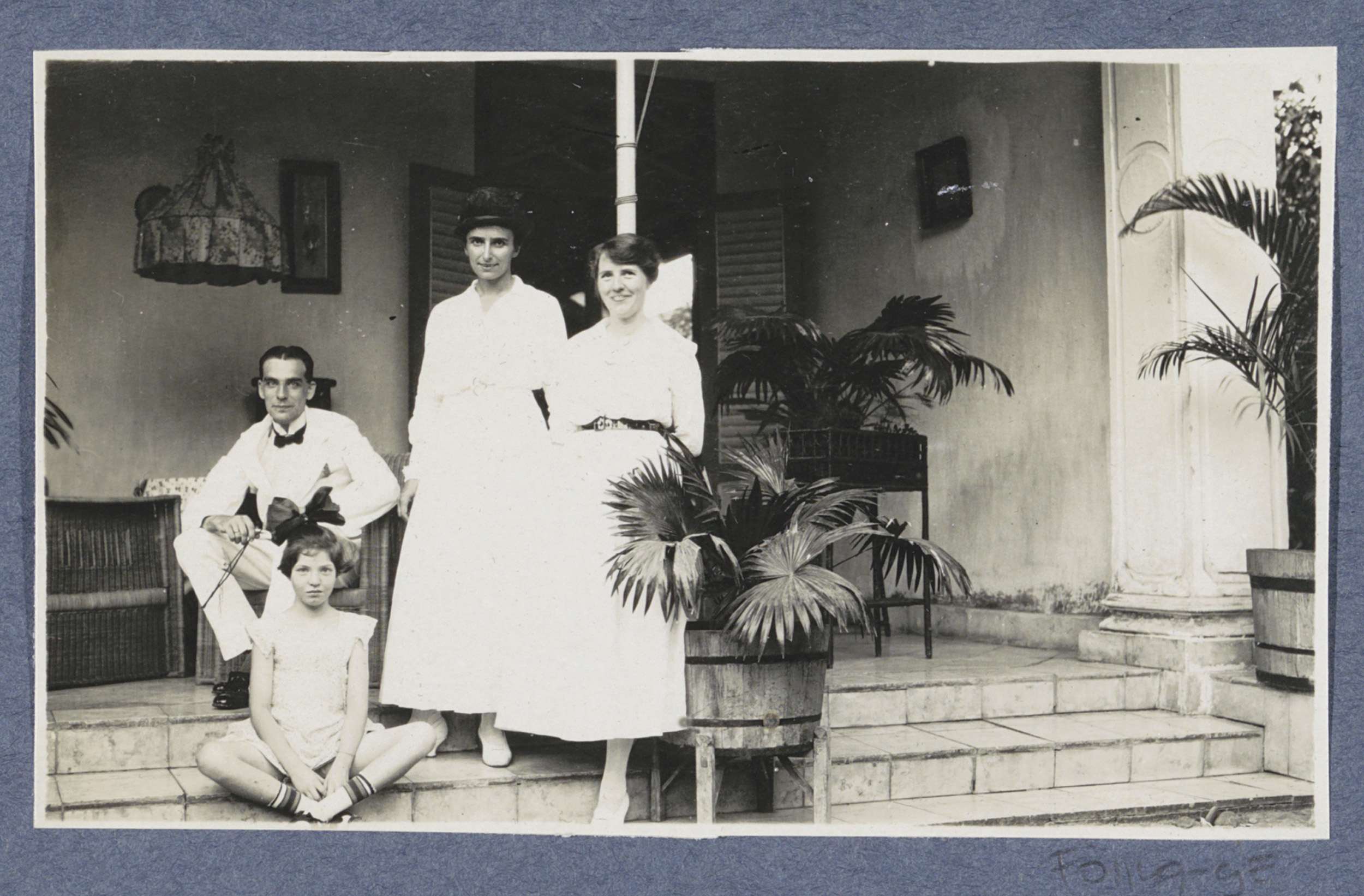 Groepsportret bij een huis aan het Meer van Bengadis...