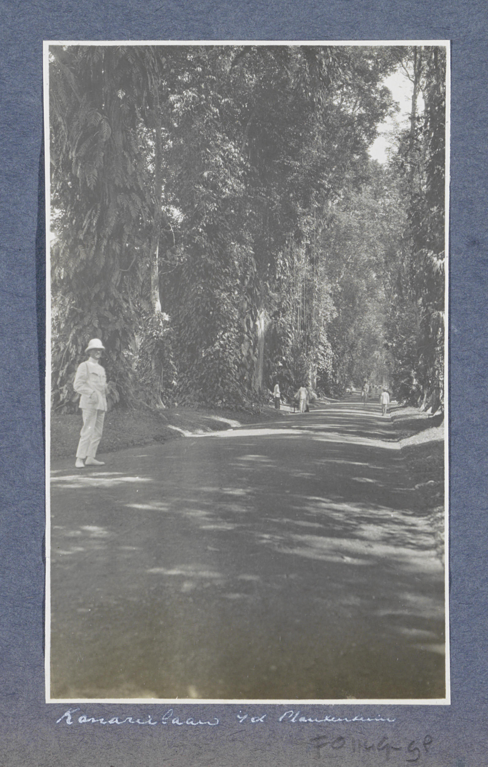 Europeaan poserend in een laan in 's Lands Plantentu...