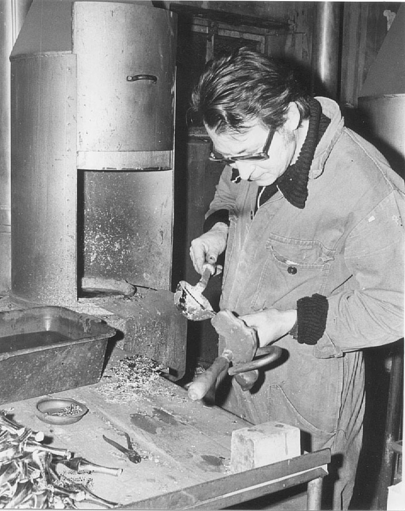 Het gieten van tin bij een Tiels bedrijf, circa 1980