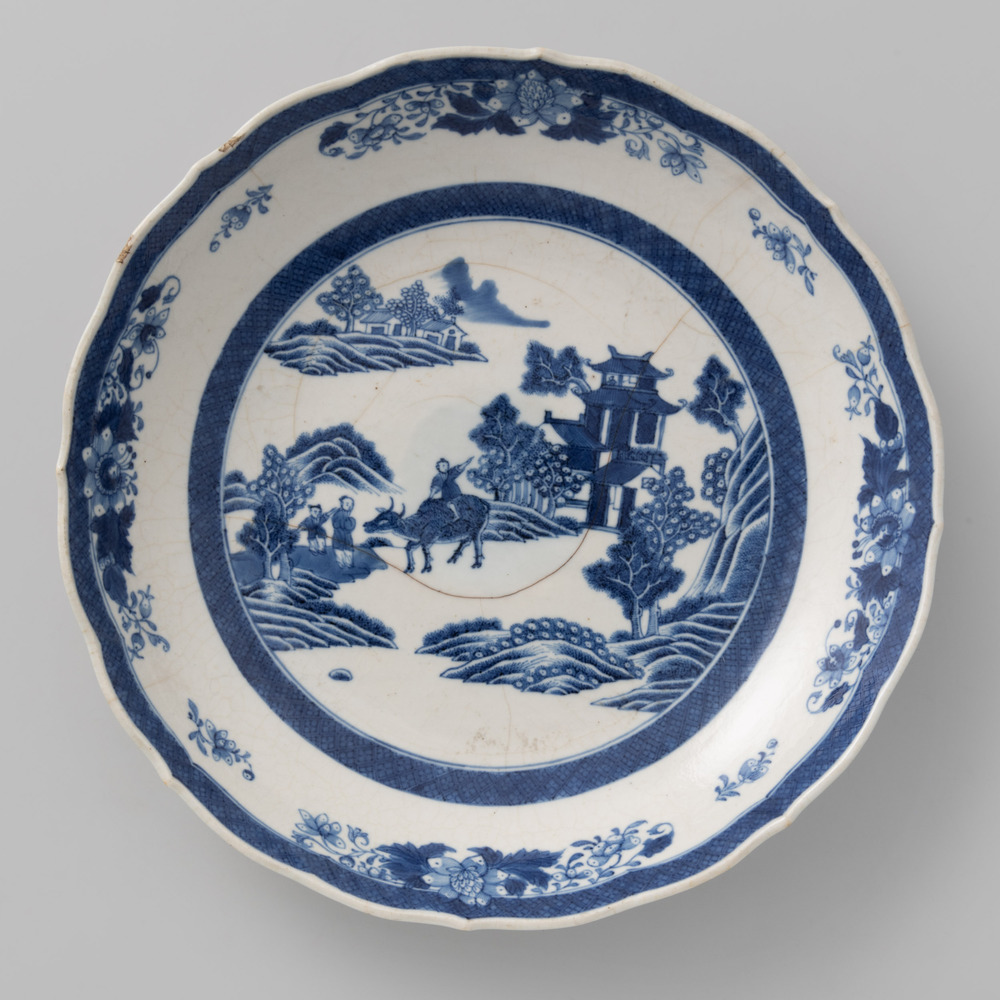 Ronde schaal, behorende tot een Chinees, blauw eetse...