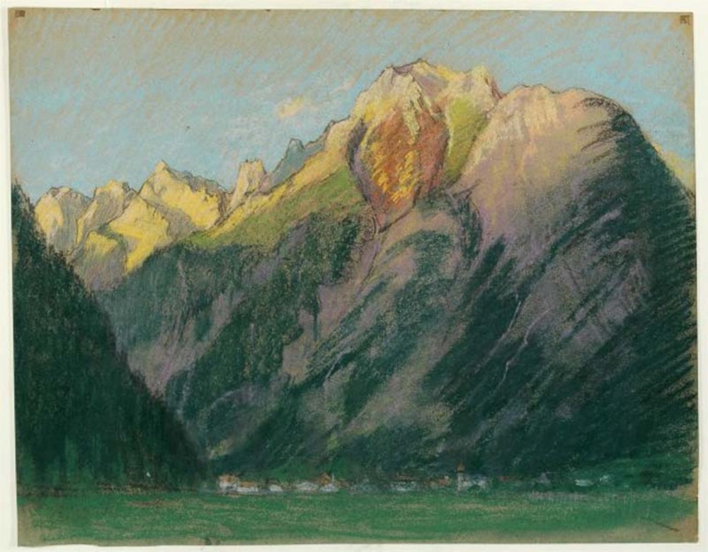 Zwitsers landschap met stad aan de voet van een berg