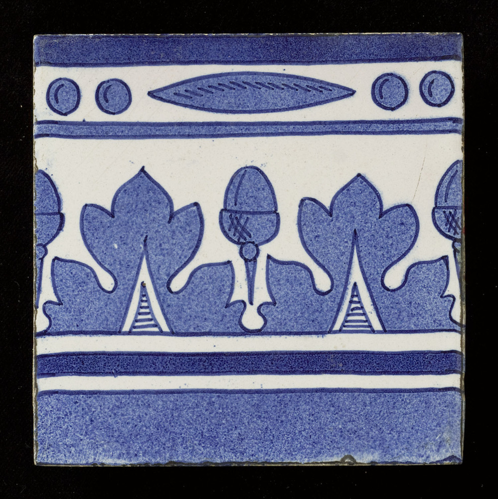 randtegel van keramiek, gesjabloneerd, onderdeel van...