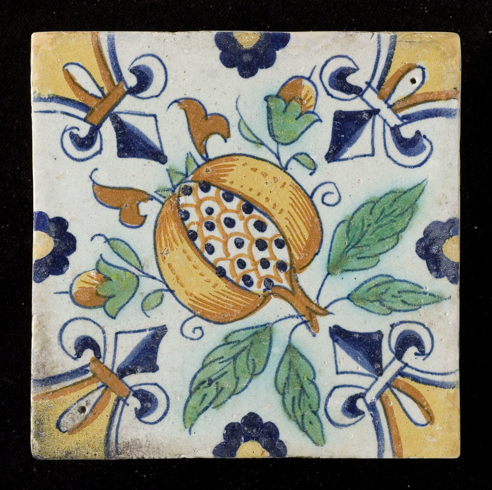 Tegel van keramiek met tinglazuur, voorstellende: or...