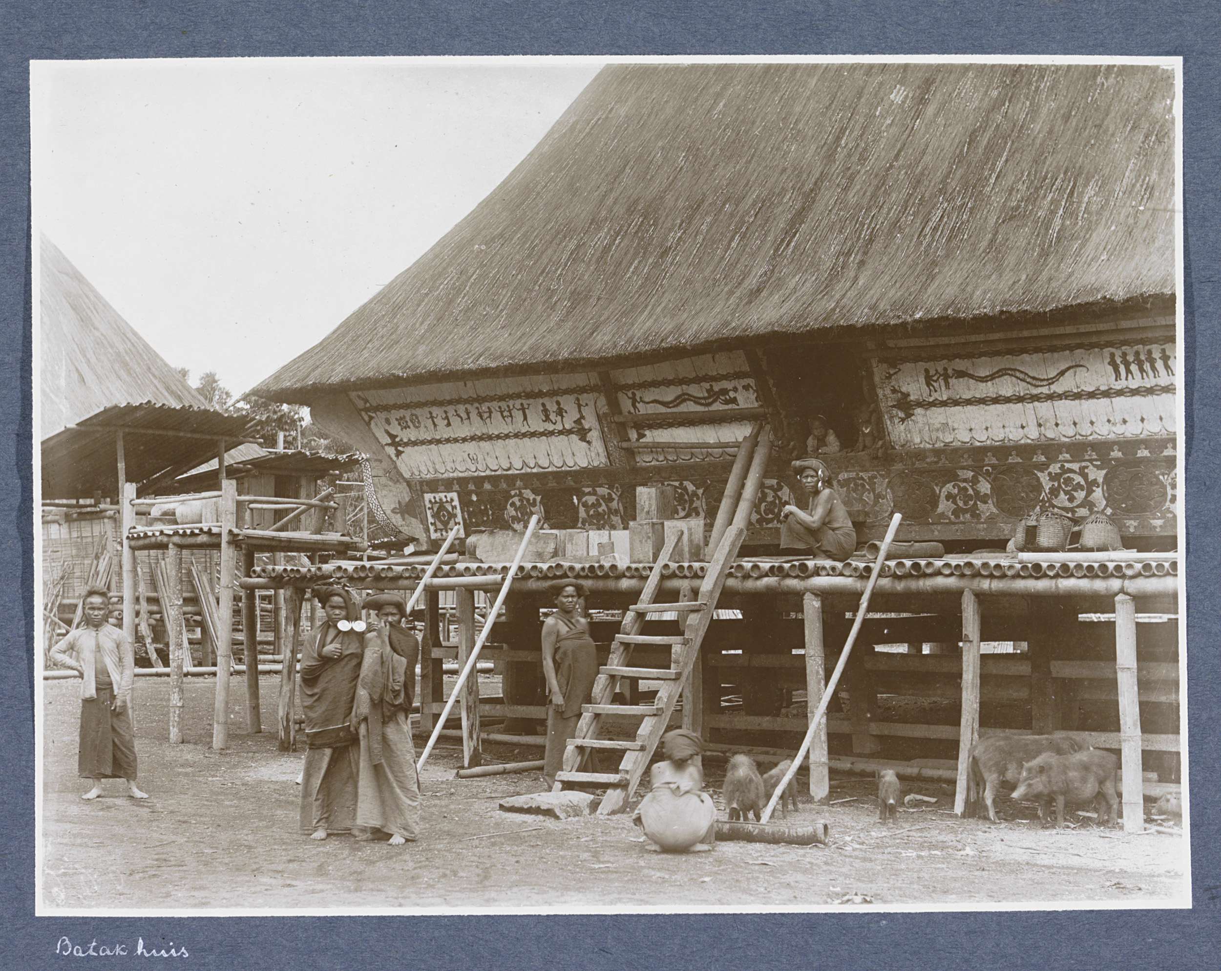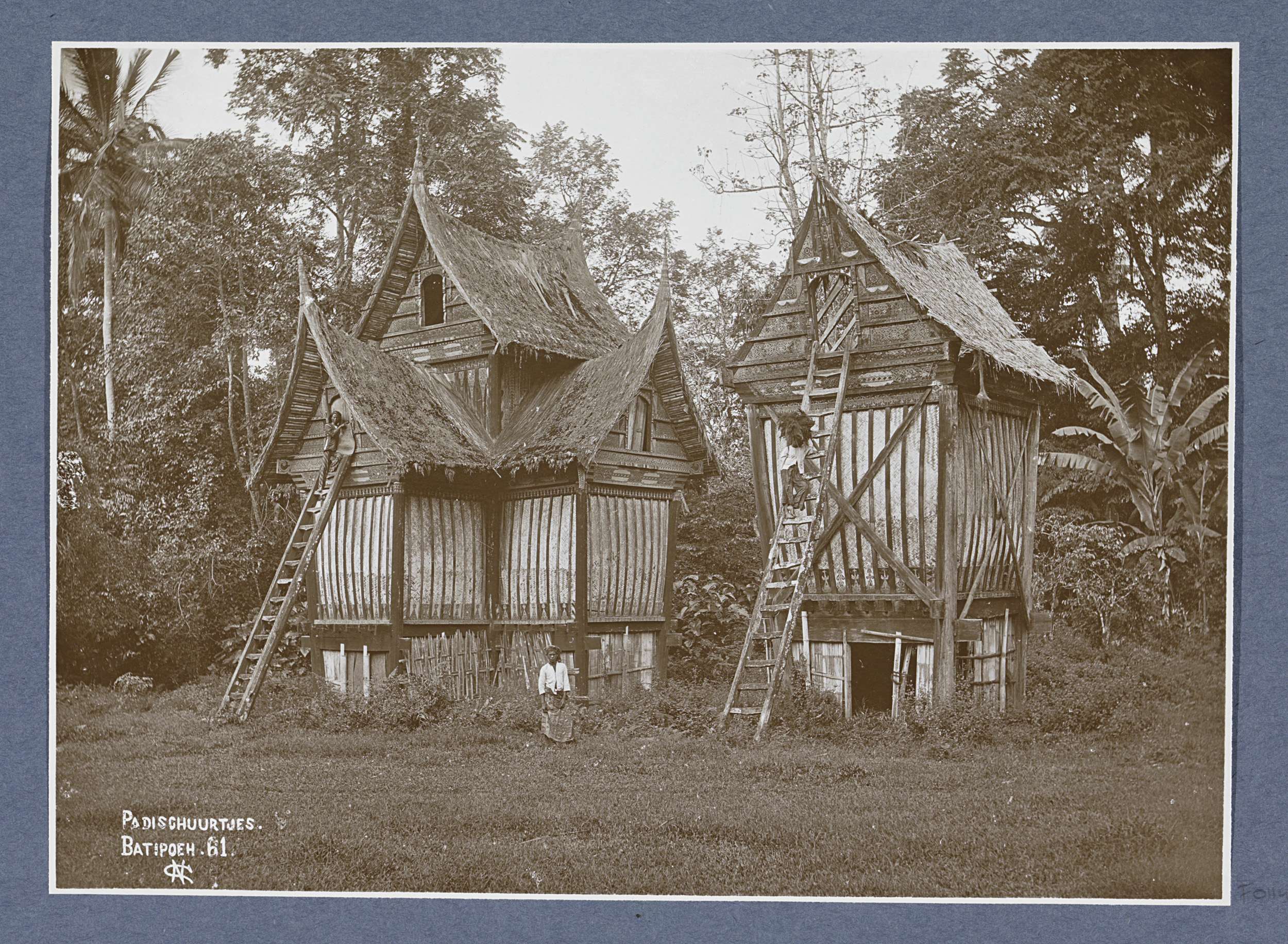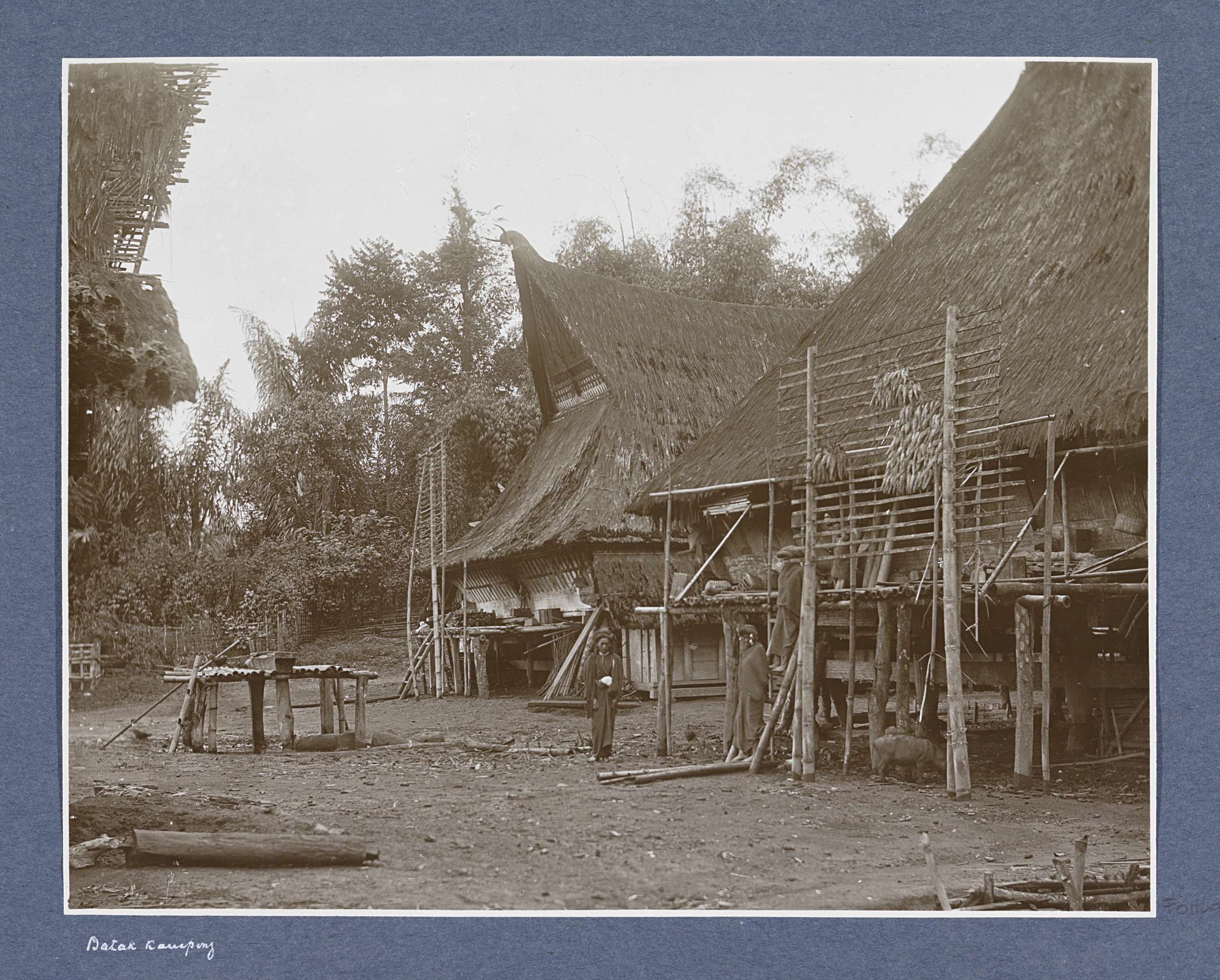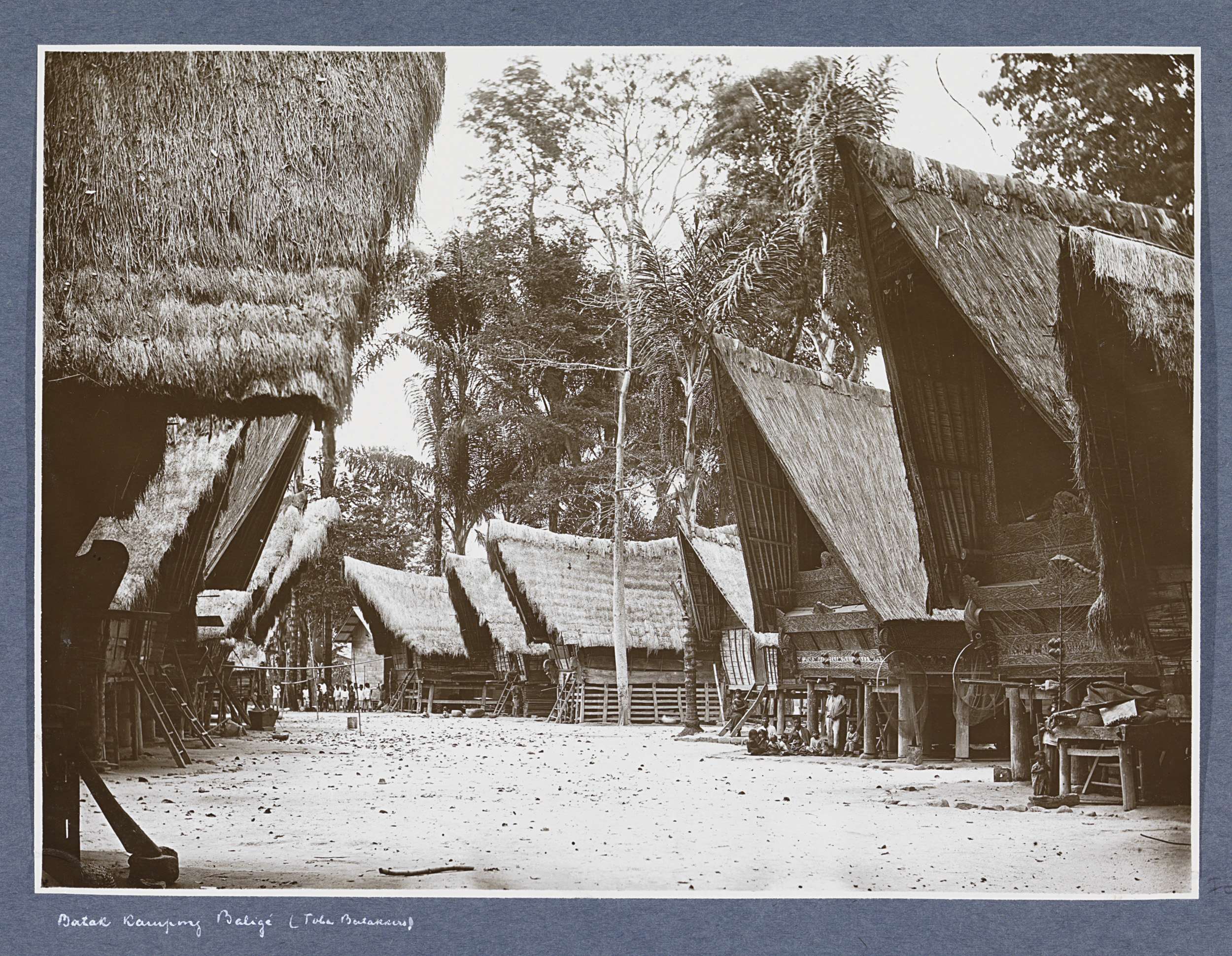Huizen in een Batakse kampong op Sumatra