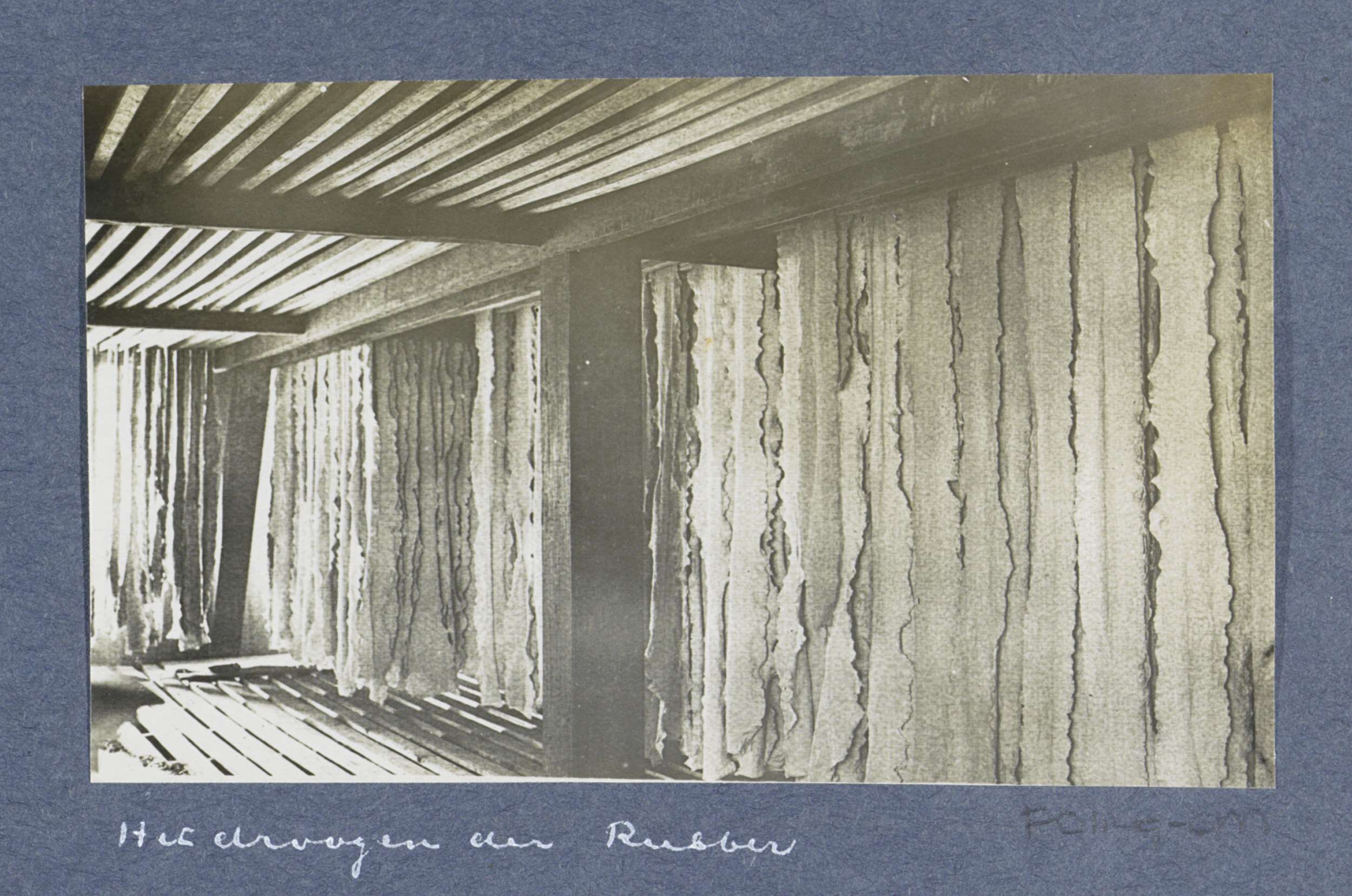Drogend rubber in een schuur op Sumatra
