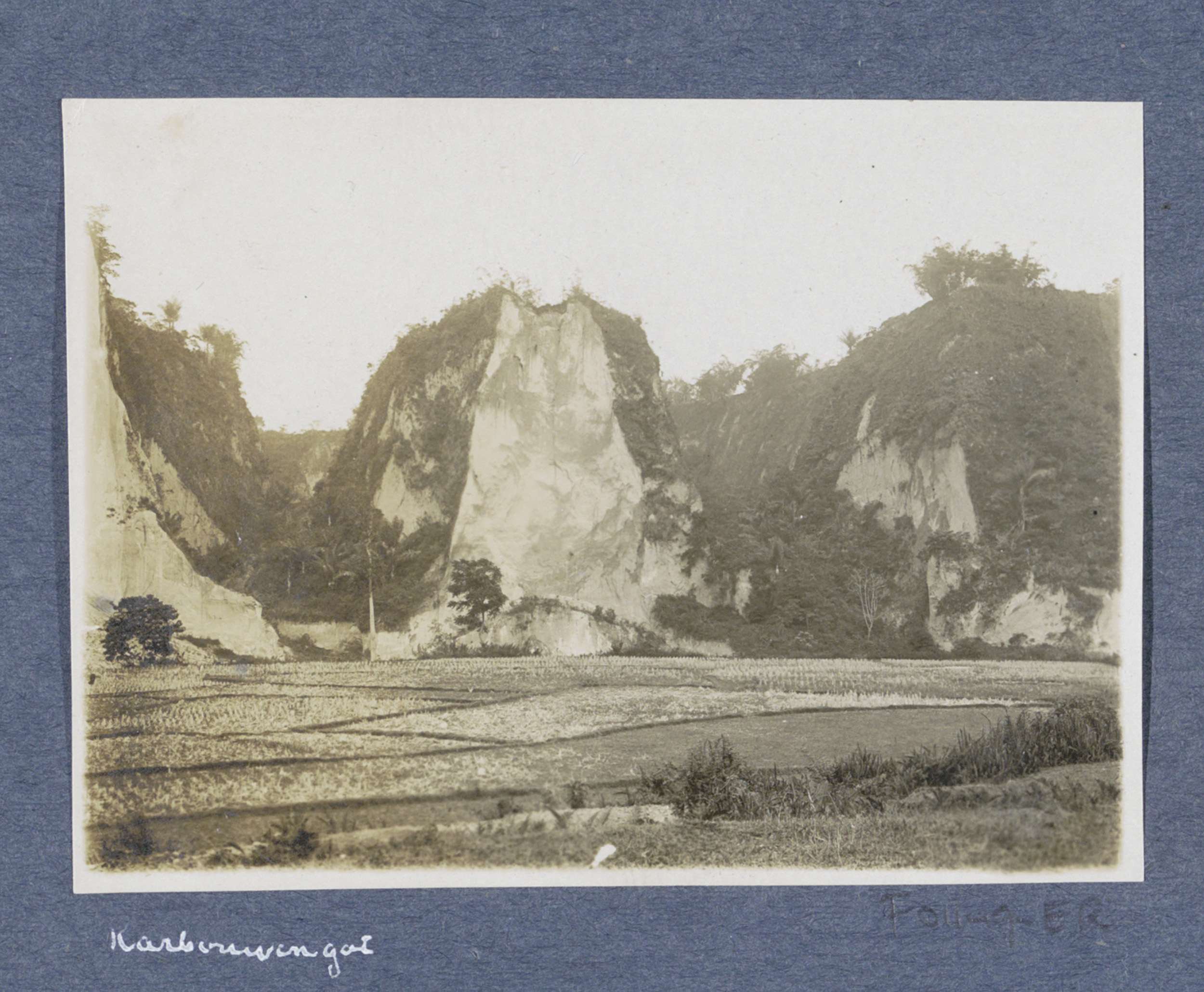Velden en rotsformaties bij Karbouwengat op Sumatra