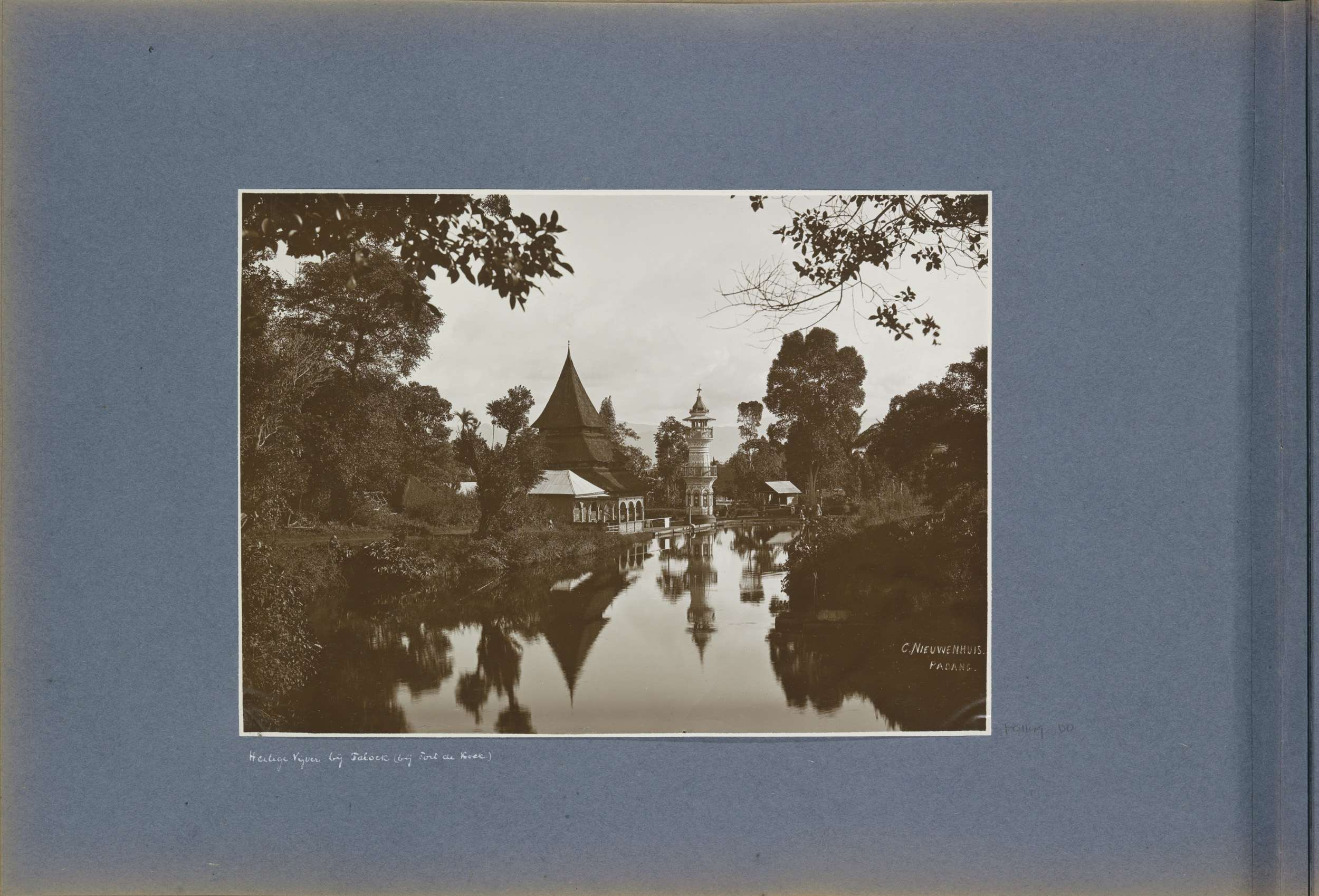 Moskee met minaret en heilige vijver te Taloek bij F...