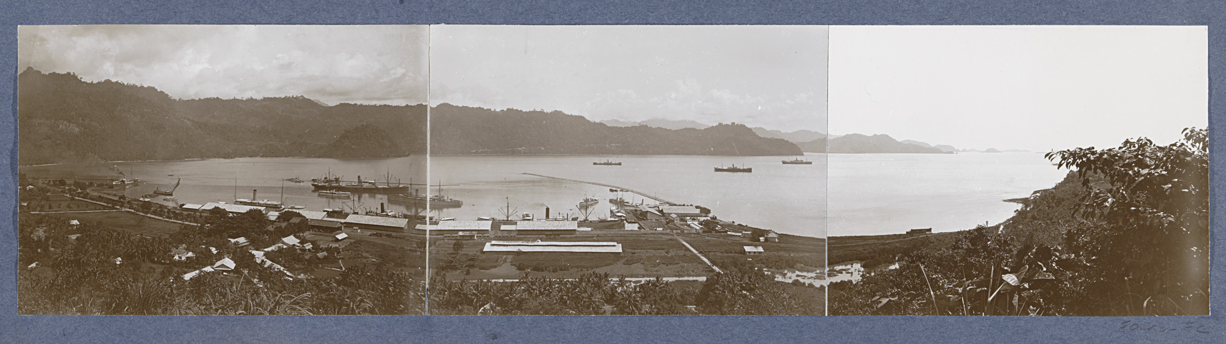 Schepen voor de Emmahaven van Padang, gezien vanuit ...