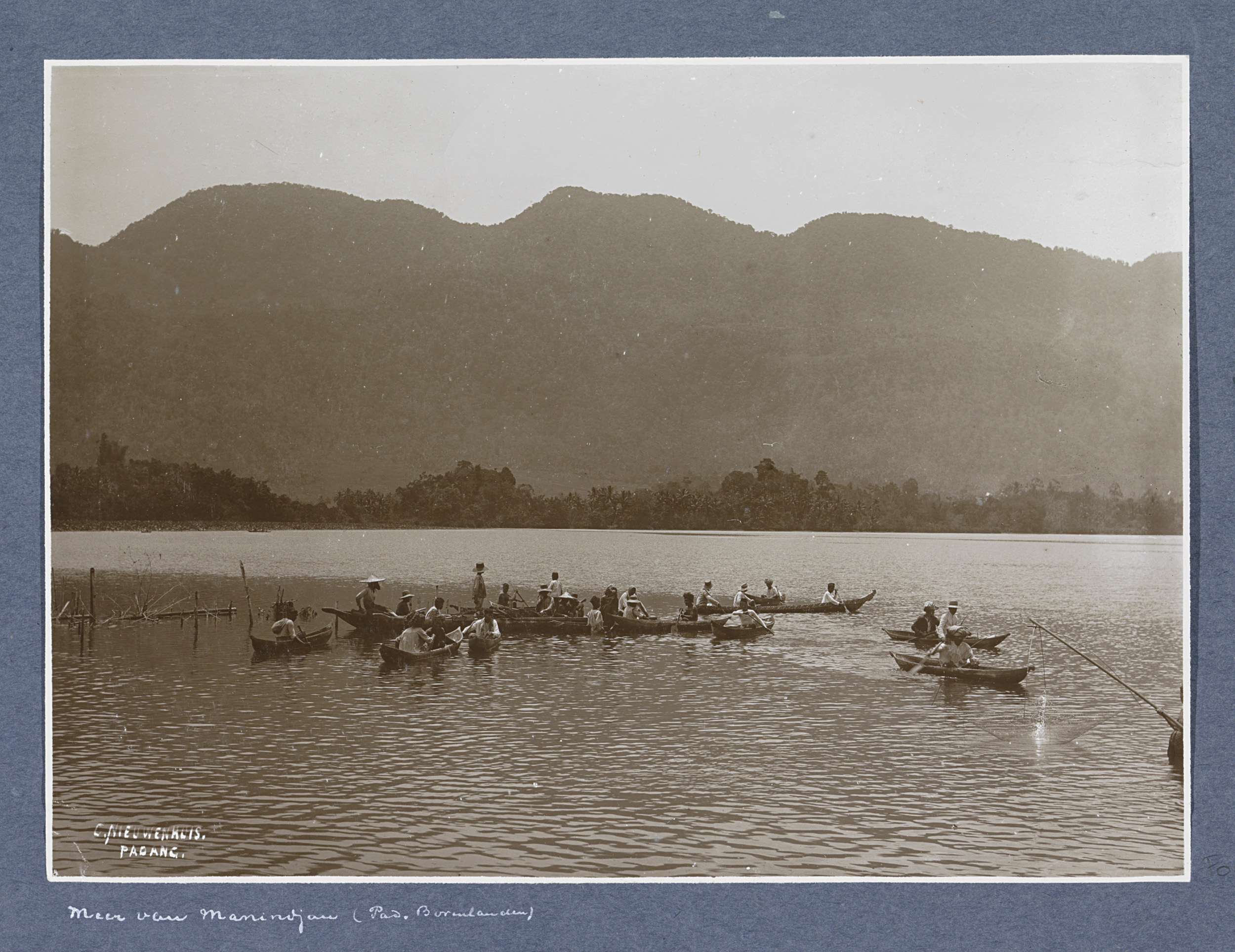 Gezicht op het Meer van Manindjau op Sumatra met vis...