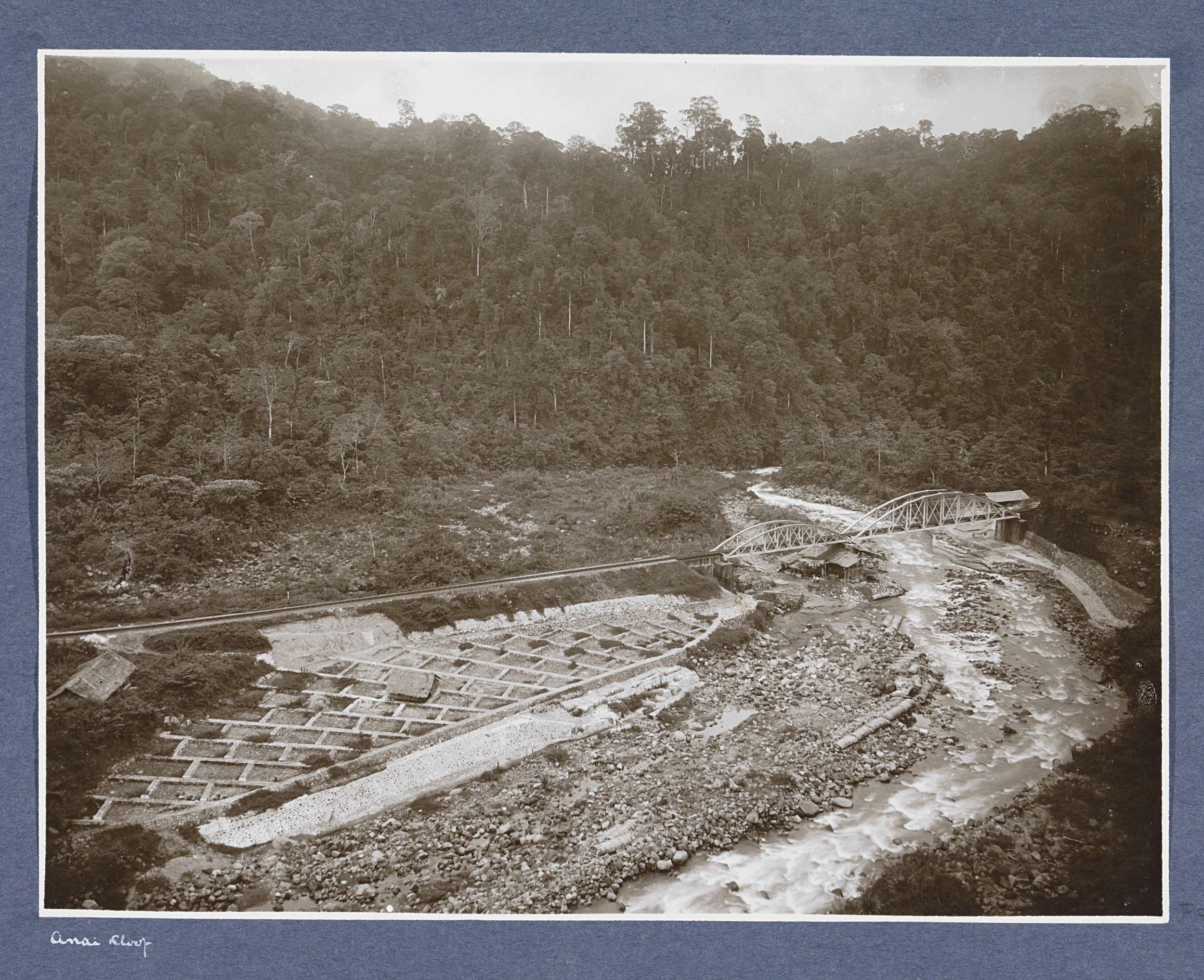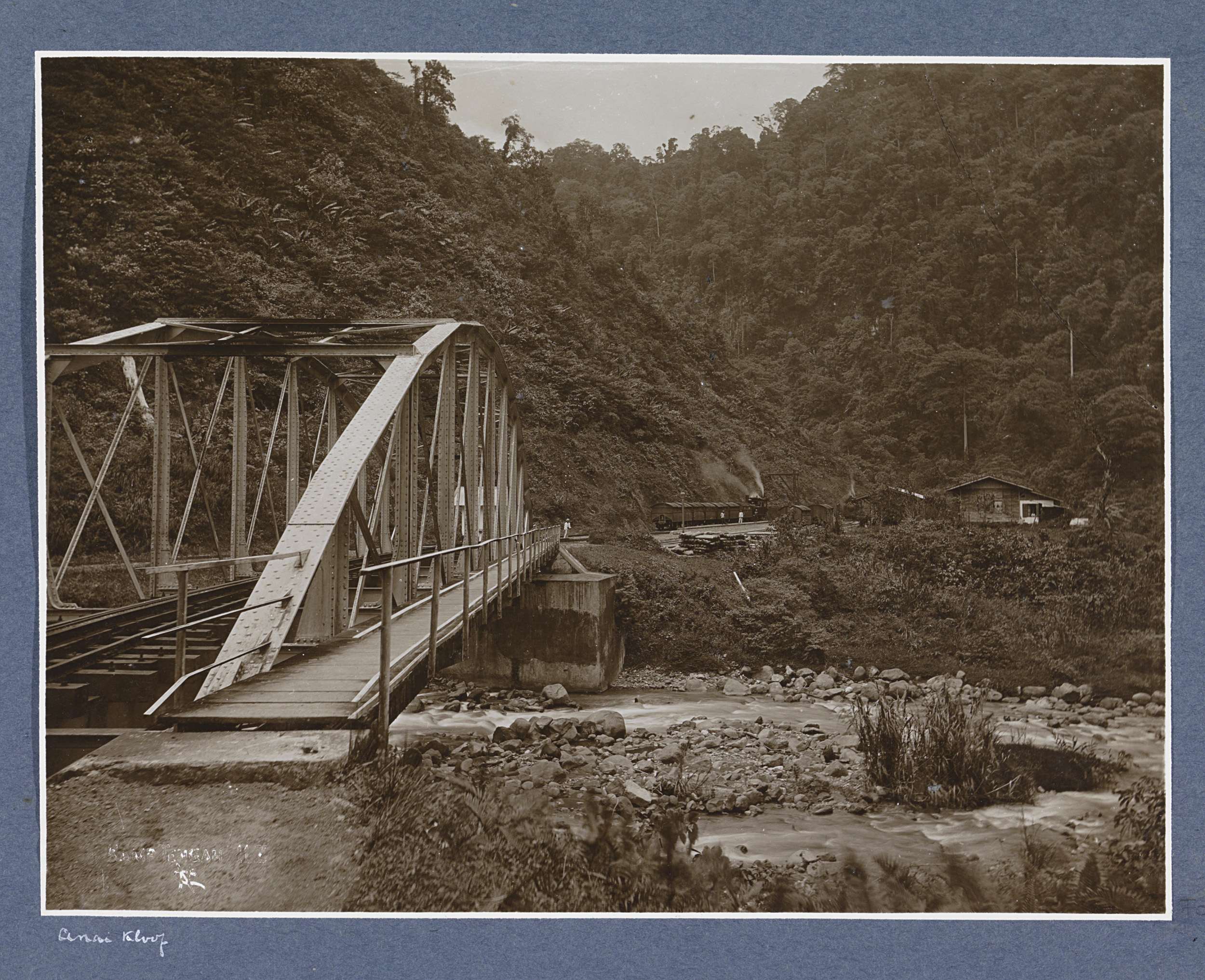 Spoor- en voetgangersbrug bij Kamp Tengah op Sumatra...