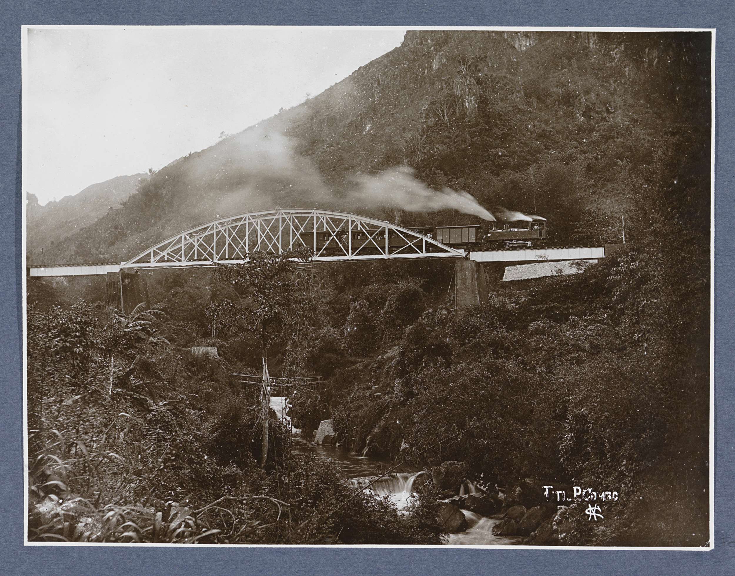 Trein op een spoorbrug bij Titi Paja Kombo op Sumatra