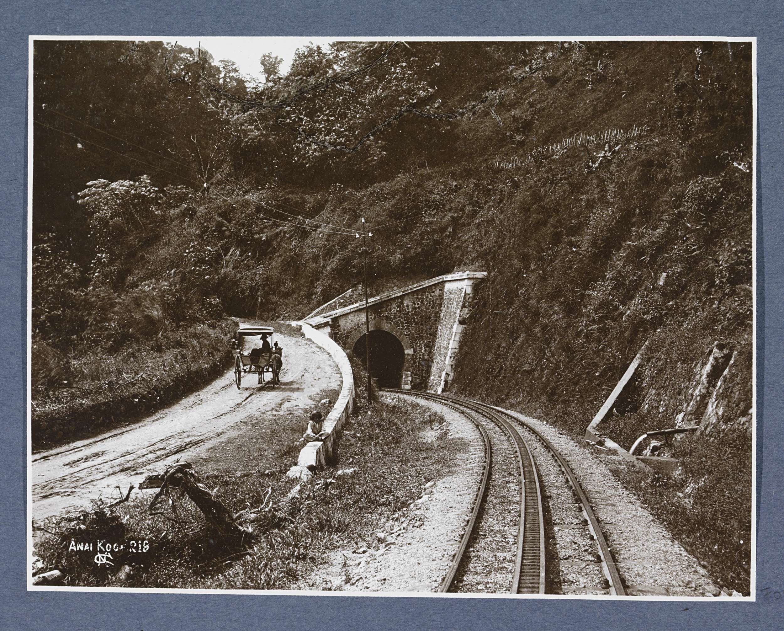 Spoorwegtunnel en rijtuig in de Anaikloof op Sumatra
