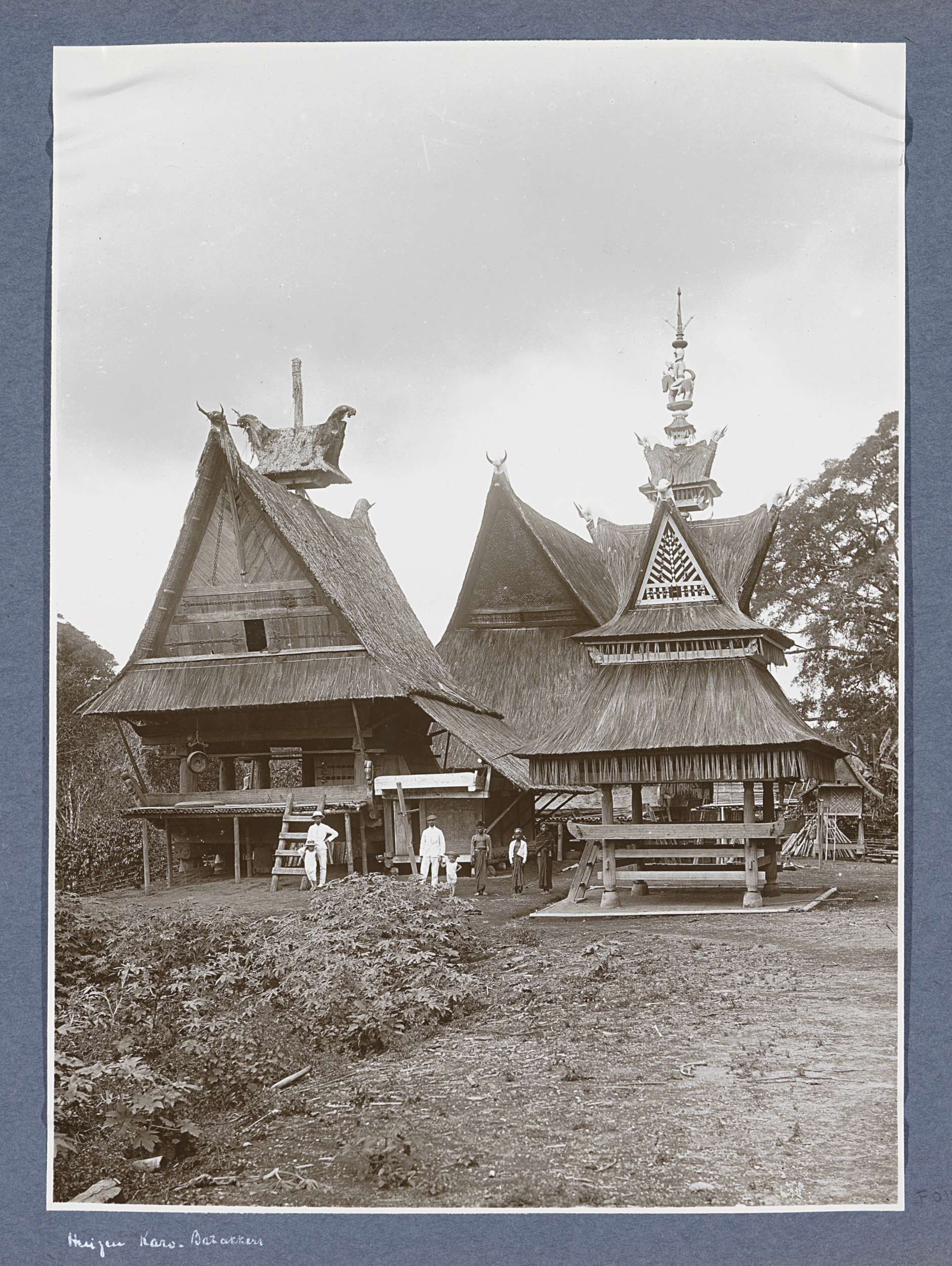 Exterieur van huizen van Karo Batakkers op Sumatra